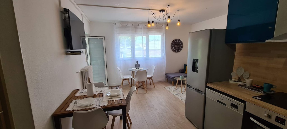 在哈瑙地區中心的風景如畫的諾維勒萊薩韋爾內村,與您的伴侶或家人一起在這個新住所放鬆身心。 二房一樓公寓。一間大客廳,配有設備齊全的廚房和一張雙人沙發床、一間帶淋浴的浴室、一間帶雙人床的臥室。有遮蔭的露台、庭院、桌上足球、自行車……