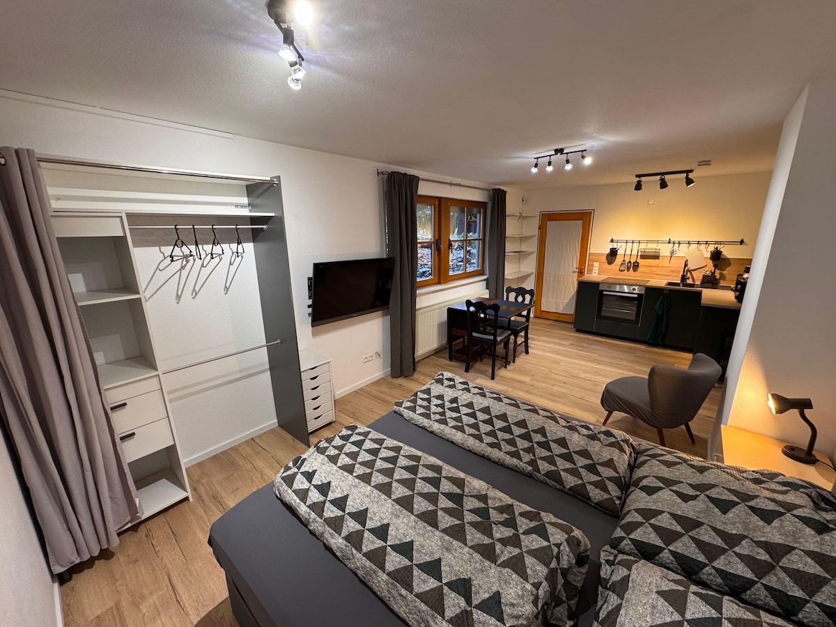 高品質、全新且非常舒適的 1 房公寓,位於施瓦本阿爾卑斯山邊緣。公寓有獨立入口、寬敞的客廳/臥室、走廊、廚房和浴室。整套公寓都是新建/翻新的。大門口有免費停車位。可直接通往獨立露臺,露臺上有桌椅和花園。 是徒步旅行、騎山地自行車、公路自行車、散步的理想起點,在夏天,Öschingen 有一個很棒的森林戶外游泳池。