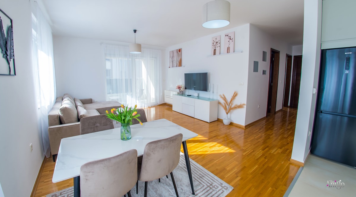 歡迎來到Oasis Luxe公寓,這是一間迷人的三臥室公寓,旨在提供位於莫斯塔爾市中心的體驗。 這間公寓位於一棟新建的現代化建築內,自然光線充足,提供寧靜、精緻的氛圍,房客一定會喜歡。 無論您是出差還是想欣賞莫斯塔爾的美景, Oasis Luxe公寓都能為您提供舒適難忘住宿所需的一切設備。