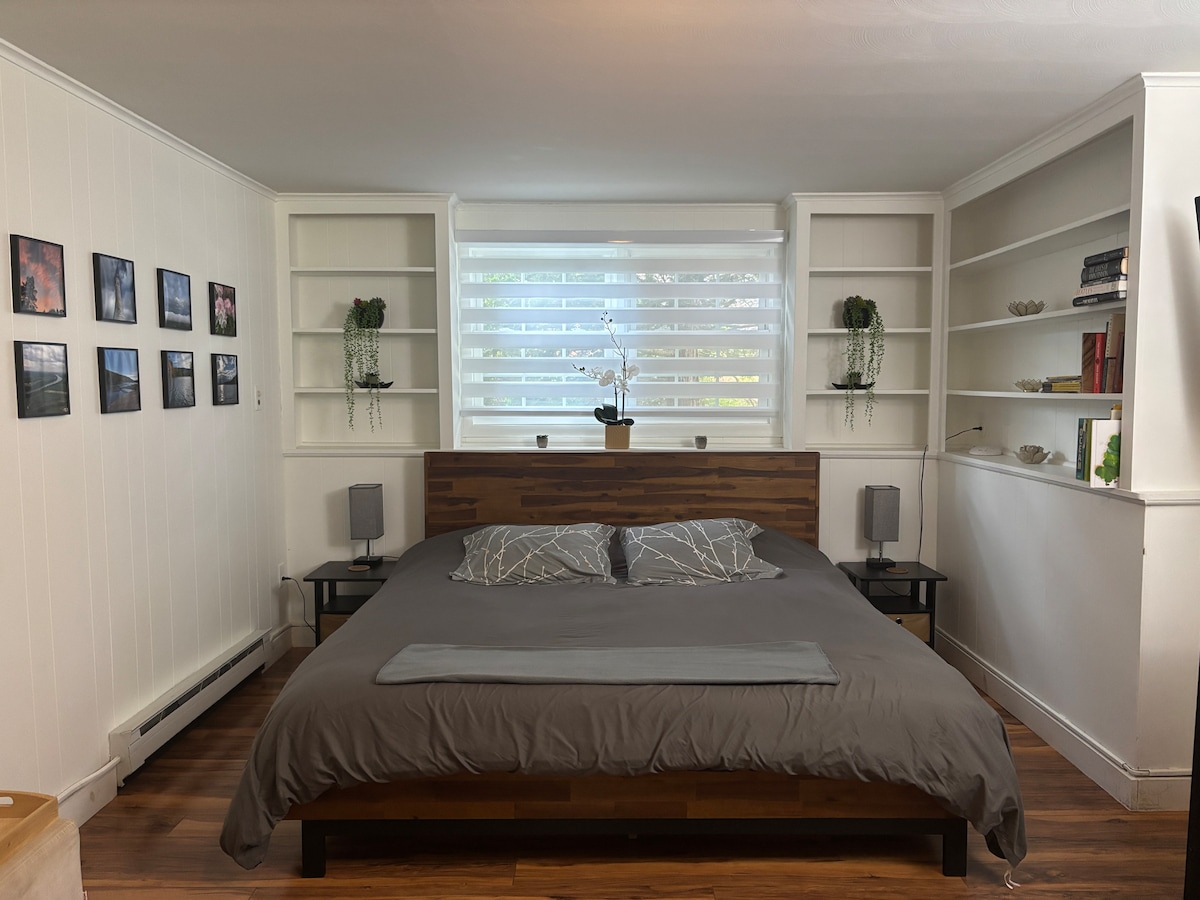 溫馨時尚的1居室公寓,配有私人花園入口,距離北安普敦市中心僅幾步之遙。新裝修,配有舒適的雙人床、沙發床和豪華床單。設備齊全的廚房、浴室、客廳、平面電視、Roku和高速WiFi ,以及洗衣機/烘乾機,非常適合住宿或遠程工作的放鬆寄宿家庭。步行15分鐘即可抵達市中心的餐廳,20分鐘即可抵達史密斯學院,2分鐘即可抵達自行車道。