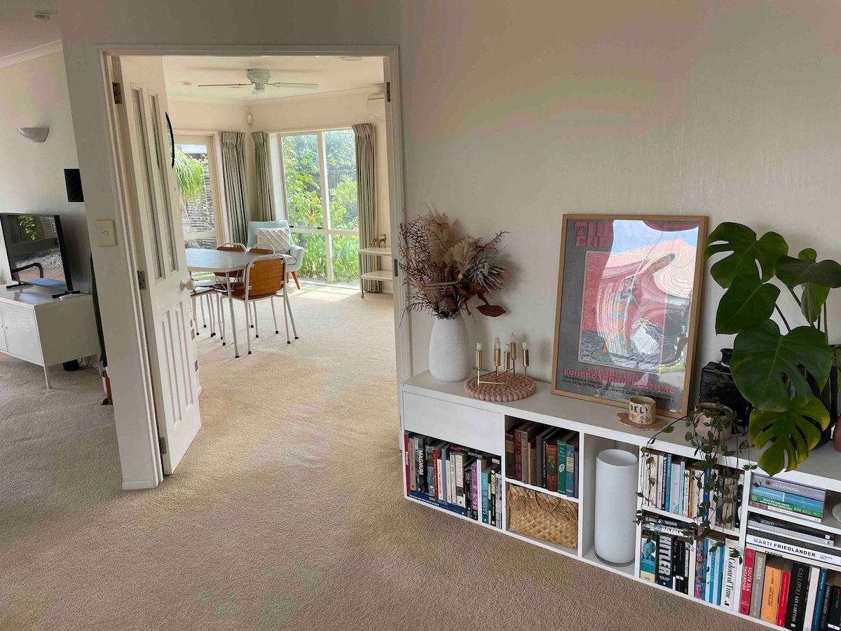 獨立入口的私人客房區。距離海灘90公尺,在Hart & Tay街有衝浪休息區。步行10分鐘即可抵達標誌性的Tay街咖啡廳。步行即可抵達新世界超市( 6分鐘)步行3.6公里即可抵達Mount Main Beach和精品購物。 步行即可抵達布萊克公園、海灣板球場和曲棍球場。開車前往Bayfair購物中心和餐飲區,靠近Baypark和Arena。非常適合想要度假的情侶或商務旅行者。