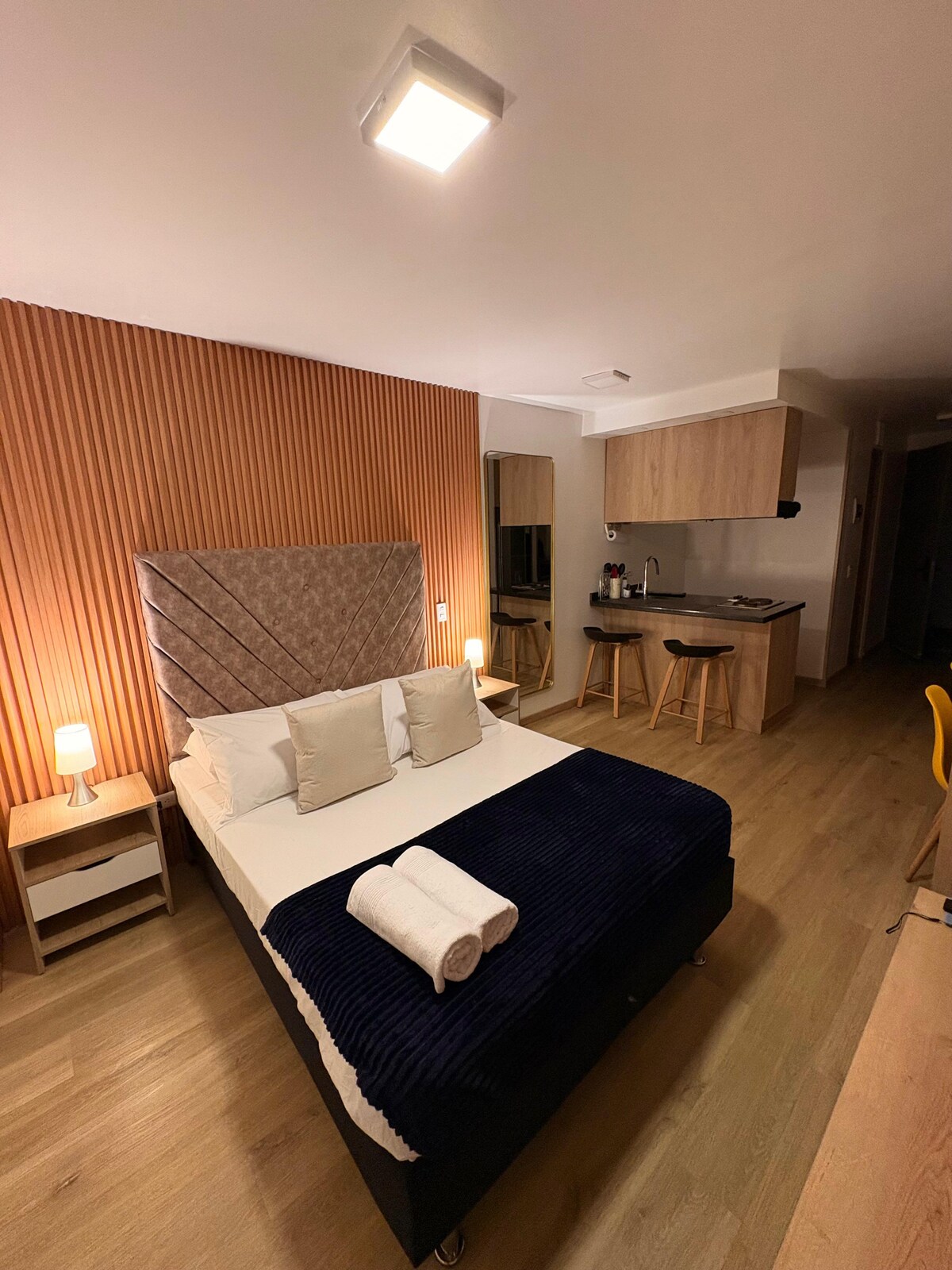 位於波哥大最好的區域。非常適合想入住單間公寓的商務差旅、休閒和小家庭。步行即可抵達市內三個主要購物中心、頂級餐廳、健身房、超市、酒吧、俱樂部、公園、咖啡店、醫院和公共交通站。 這間全新的單間公寓提供24小時保安服務,大樓頂樓設有全景露臺、按摩浴缸和波哥大主要公園之一的前景,el Virrey