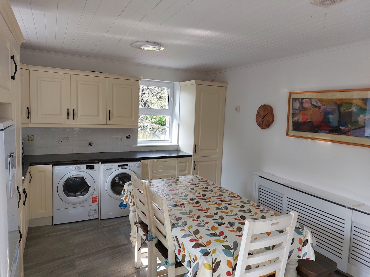 完全用石頭建造的獨特房屋。兩間木板樓上臥室和一間樓下臥室。所有臥室均設有套房。大型現代化設備齊全的廚房。高天花板起居空間。一個真正的草皮爐子來溫暖自己。非常適合成人和兒童。(提供嬰兒床、兒童高腳椅等)有很多空間、停車位。四周環繞著美麗的康尼馬拉風景。鄉村環境,但距離高威市中心僅5英里。