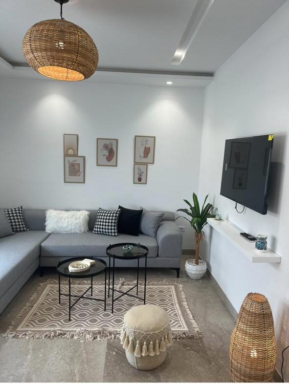 Cet appartement S+2 entièrement équipé offre un cadre moderne et confortable, parfait pour vos séjours en famille, entre amis ou en couple. L’appartement comprend : Deux chambres spacieuses avec rangements Un salon lumineux avec Smart TV et climatisation Une cuisine équipée (frigo, four, micro-ondes, ustensiles) Une salle de bain moderne Emplacement central, proche des cafés, restaurants et du souk À quelques pas de la plage Wi-Fi haut débit et climatisation dans toutes les pièces
