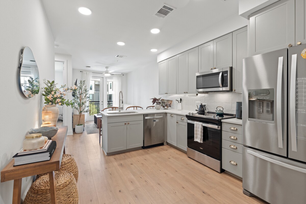 Experience refined comfort in this stylish 1-bedroom apartment, ideally situated in one of Austin’s top luxury communities. Enjoy direct poolside access and a private patio, perfect for morning coffee or evening relaxation. This modern space offers the perfect blend of upscale design and resort-style amenities, making it an excellent choice for a weekend escape, business trip, or extended stay in the heart of Austin.