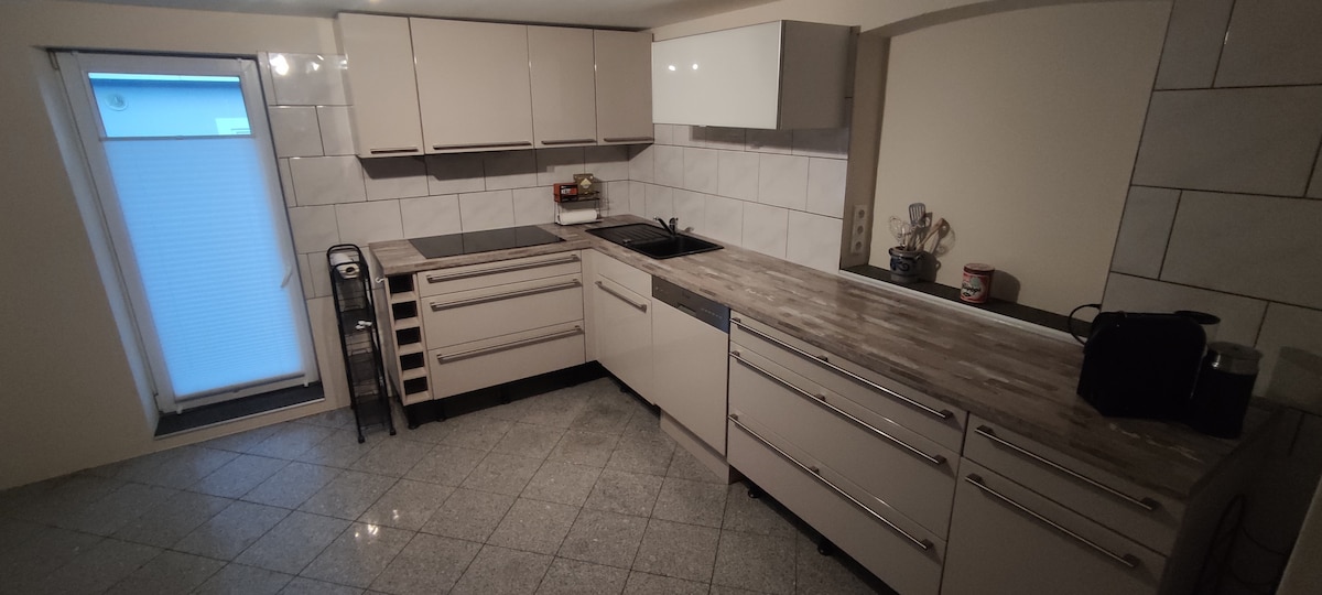 歡迎來到我們的家! 在我們的房子後面,有一間全新的現代化公寓,非常適合您放鬆身心。配備一個夏季廚房,讓您享受烹飪的樂趣;一個時尚的淋浴間和一個開放式臥室,配有一張舒適的雙人床(1.60 x 2.00 公尺),讓您享受最佳的設施。在綠色的私人木製露臺上,您可以放鬆地享用早晨的咖啡和舒適的葡萄酒之夜。最棒的是什麼?整套公寓都歸您們使用——沒有壓力,只有安寧!