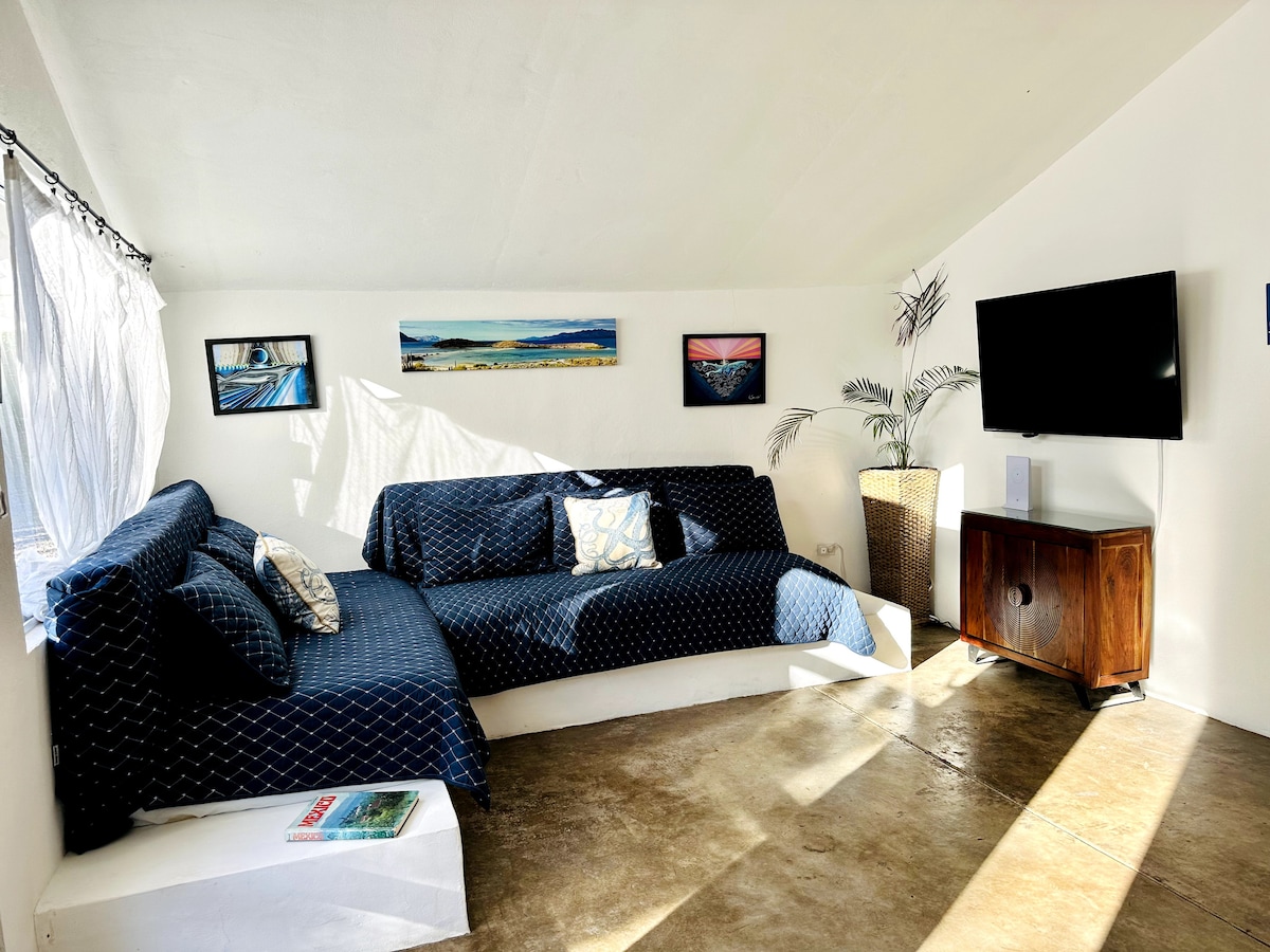 Casita Azul是一間靠近市鎮的2間臥室小屋,位於私人棕櫚樹林綠洲,提供安全、安靜和獨特的住宿。 享受Starlink互聯網、高品質特大床、兩張單人床、智能電視、全套廚房、餐廳和客廳區域、充足的停車位、室外座位等。 步行15分鐘或開車5分鐘即可到達市區,開車15-20分鐘即可到達美麗的白沙灘。 房源完全有圍欄,因此您的狗也可以在沒有繩索的情況下玩耍!