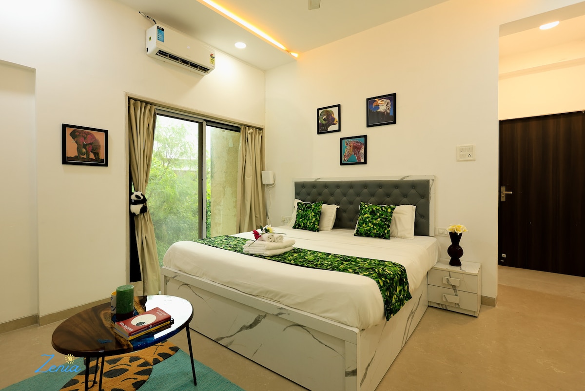 This unique space radiates luxury in Mumbai’s renowned national park reserve that preserves much of the city’s flora & fauna. Its a 3-storey bungalow in which 2 floors are available to guests. Surrounded by nature yet accessible to the city, (a minute away from the western express highway/public transport), it is the perfect place for a comfortable, relaxing stay close to Mumbai's action. The apartment offers spacious living with private bathrooms, hot water, queen-sized beds & air conditioning.