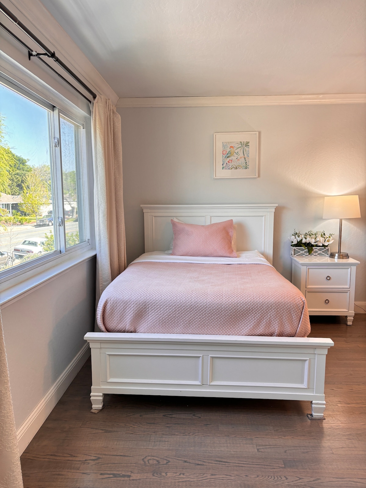Cozy Studio within walking distance to Valley Fair & Santana Row! This charming space offers comfort & privacy with its private entrance. Ideal for solo travelers, professionals, or couples, it features a bedroom with two beds. The proximity to O'Connor Hospital makes it perfect for those needing accommodation close to medical facilities. On-premise parking ensures convenience, and the attached private full bathroom guarantees comfort during your stay.