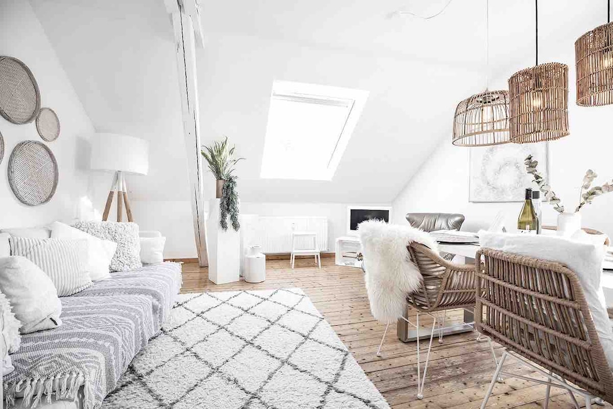 我們新翻修的閣樓式公寓位於吕德斯海姆市中心一個美麗的舊酒莊的中心。所有景點都近在咫尺。只需幾分鐘即可抵達主要景點,如纜車站、著名的「Drosselgasse」,或開始徒步前往尼德瓦爾德紀念碑。 即使公寓位於市中心,也能提供隱私和安靜。 配備在吕德斯海姆(Rüdesheim)放鬆住宿所需的一切設備。