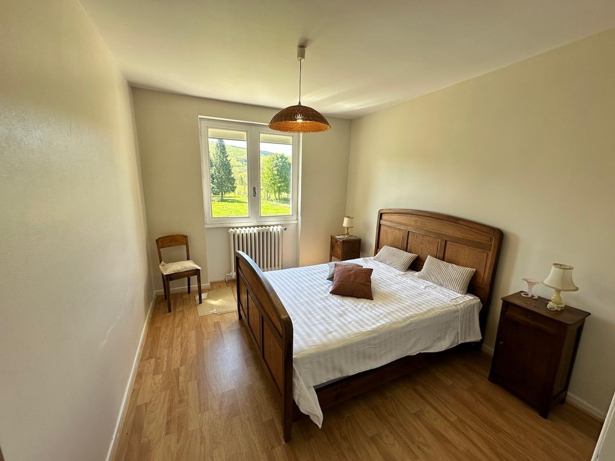小屋坐落在大自然中,您可以享受這裡的寧靜與祥和,去徒步旅行並參觀許多旅遊景點。18 平方公尺的翻新小屋,有空調、客廳(電視)、小廚房(冰箱、2 個爐子、COMBINE 烤箱、SENSEO 咖啡機等)、夾樓臥室、淋浴間 + 廁所、20 平方公尺的露臺和小草坪,俯瞰河流和山谷