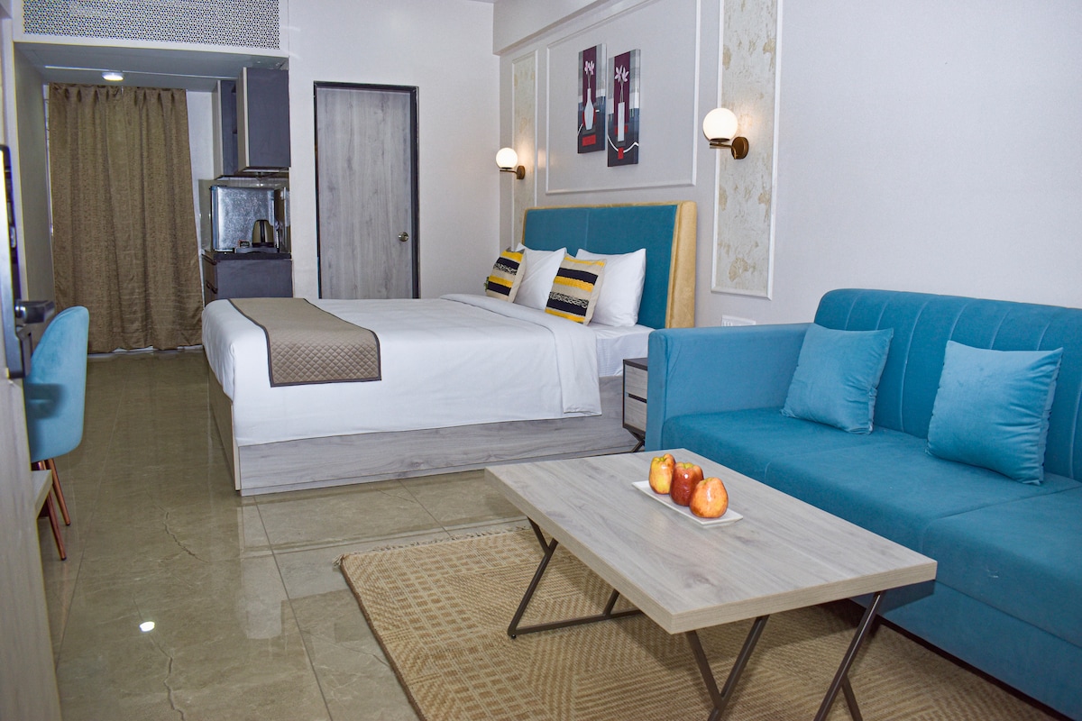 Enjoy unmatched convenience just 20 minutes from the airport. Surrounded by banks, industrial hubs, and corporate centers, this stay is perfect for business or leisure. With direct highway connectivity, reaching any part of the city is quick. Chokhi Dhani is only 10 minutes away, and several multicuisine restaurants are nearby. Bombay Hospital is less than 1 km away, and Uber, Ola, Blinkit, Swiggy, and Zomato ensure easy travel and fast deliveries. Smoking inside room is prohibited 🚭
