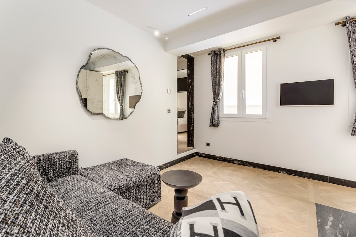 Welcome to your home away from home, perfectly situated in the heart of Paris, just a few minutes' walk from the Louvre, the Opera, and the Seine. This stylish and contemporary apartment features a separate bedroom, providing a peaceful retreat in the city. The open living area is perfect for unwinding, with a comfortable sofa and a small dining table for enjoying meals at home. Ideal for up to 4 guests, this flat combines modern comforts with the timeless charm of Parisian living.