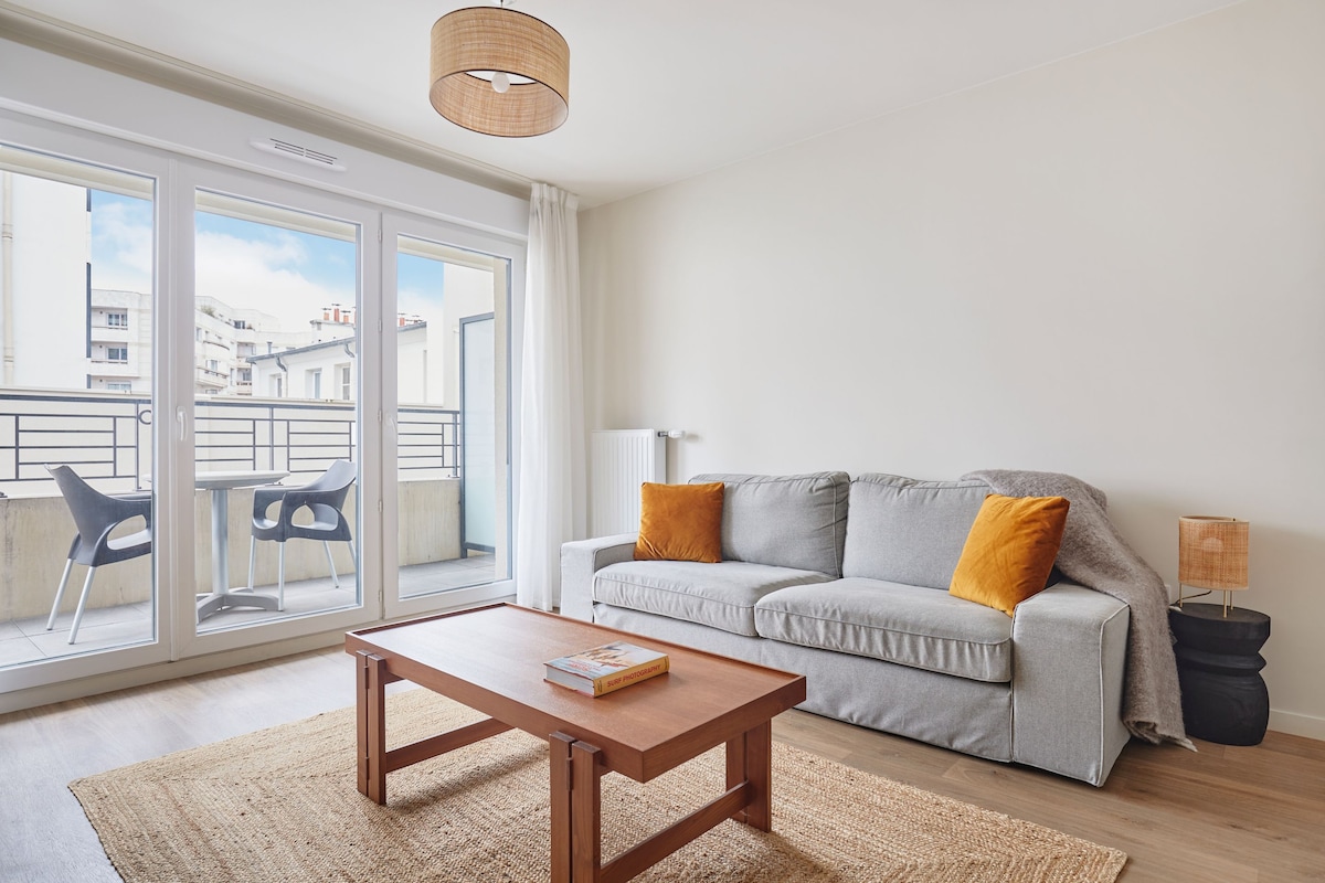 配備按摩浴缸、桑拿房和露台的✨豪華空調公寓,位於巴黎郊區,距離巴黎 RER C 車站 100 公尺,步行 5 分鐘即可抵達地鐵 7 號線🚶。 供您使用: - 私人按摩浴缸和桑拿房 - 配有加大雙人床(180 公分)的臥室 - 配備小廚房:冰箱、電磁爐、微波爐、NESPRESSO 咖啡機、水壺 - 舒適的露台 - 意大利式淋浴間 - 提供床單、浴袍和毛巾