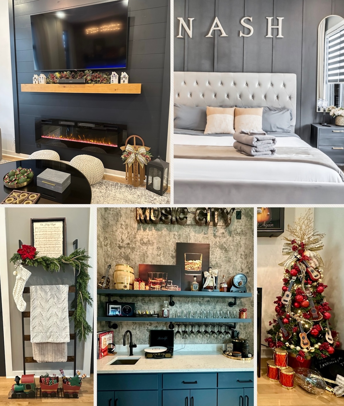 享受這個現代化的房源,欣賞市中心的美景。距離百老匯酒吧僅2.5英里,非常靠近許多景點,包括日產體育場、TopGolf、Bridgestone Arena、餐廳和現場音樂!包括一個車庫可供停車。車庫的一部分已改建成休閒區,配有乒乓球桌和電視。 私人露臺區域,可供您享用早晨的咖啡。在多莉壁畫前拍照。充足的空間可供團體入住,配有7張床、2張日式沙發和2張充氣床墊。