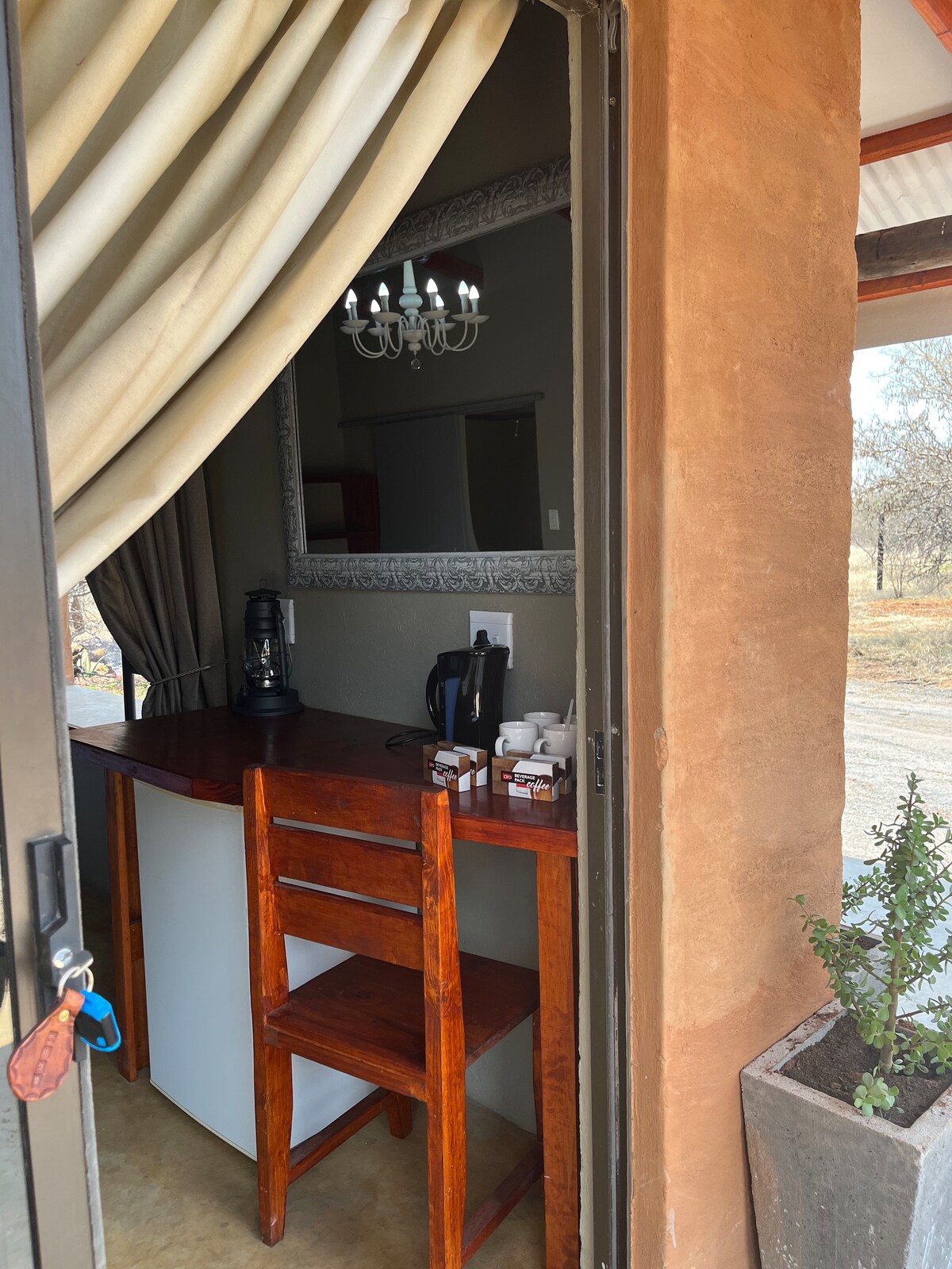 The chalet is furnished with a double bed, with the option of additional single beds, and has an en-suite shower. The air-conditioned chalet offers a TV with DStv, a bar fridge, and tea and coffee facilities. Wi-Fi and a workstation are also available.