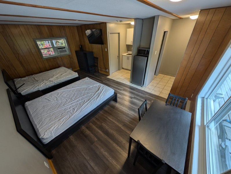 距離湖泊和Boat Launch Firehouse Lodge僅幾分鐘 路程現代步行甲板房間、全套浴室、1.8公尺寬雙人牀、WiFi、50吋LED衛星電視、冰箱、微波爐、小廚房。 位於8英畝的土地上,您可以找到許多好去處,包括排球、多條美麗步道、火坑、野餐桌、躺椅等! 還有1間臥室、3間臥室和5間臥室的海濱小屋。 預訂選項:週一至週三、週三至週五和週五至週一