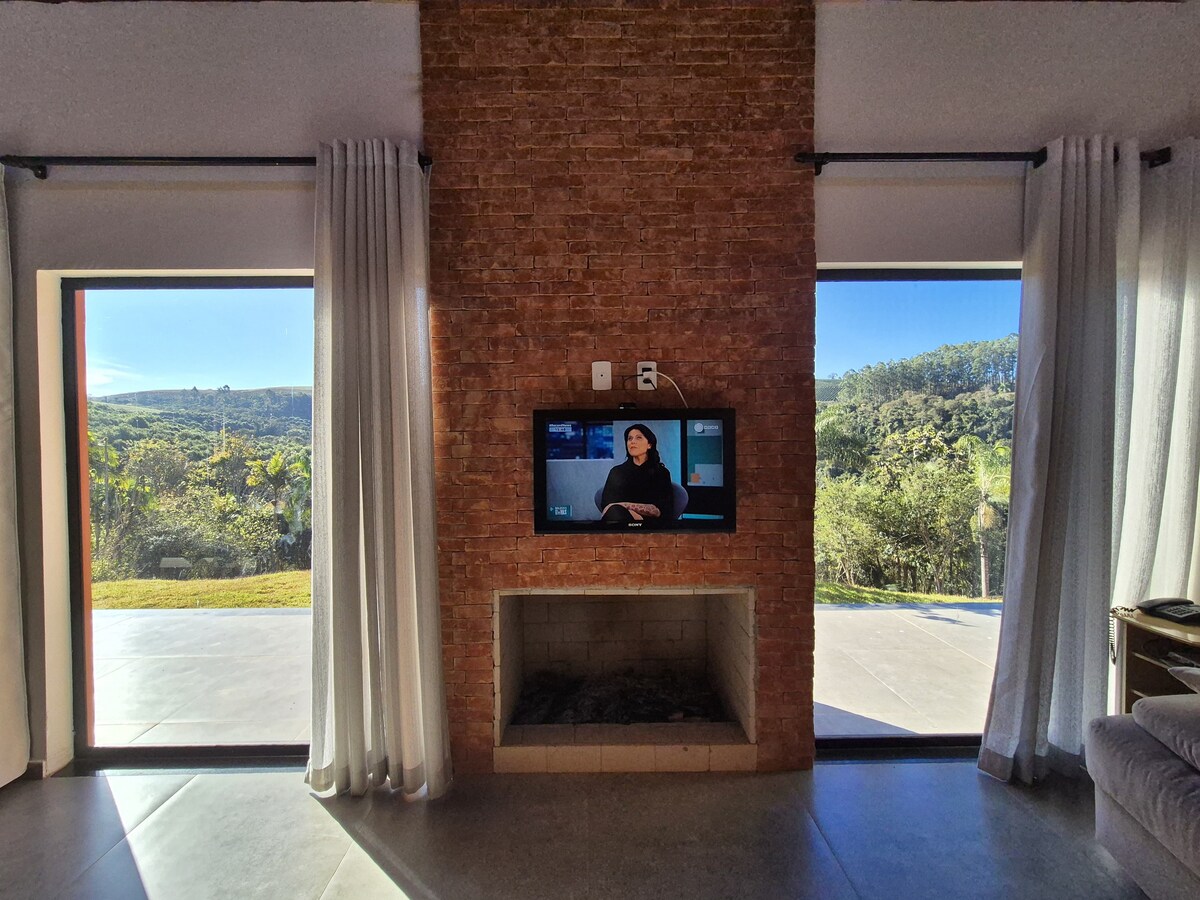 Atypical country house in the middle of a coffee field in the south of Minas Gerais, Here nature is the queen bathing on a 2000m2 fenced and protected land, a permaculture is being installed with over 150 edible species, a biodiversity and a magical view at every step of the day at sunrise and sunset a spectacle awaits you, pure air autonomous house in drinking water and solar electricity, traditional wood-fired kitchen and modern equipped kitchen for all tastes.