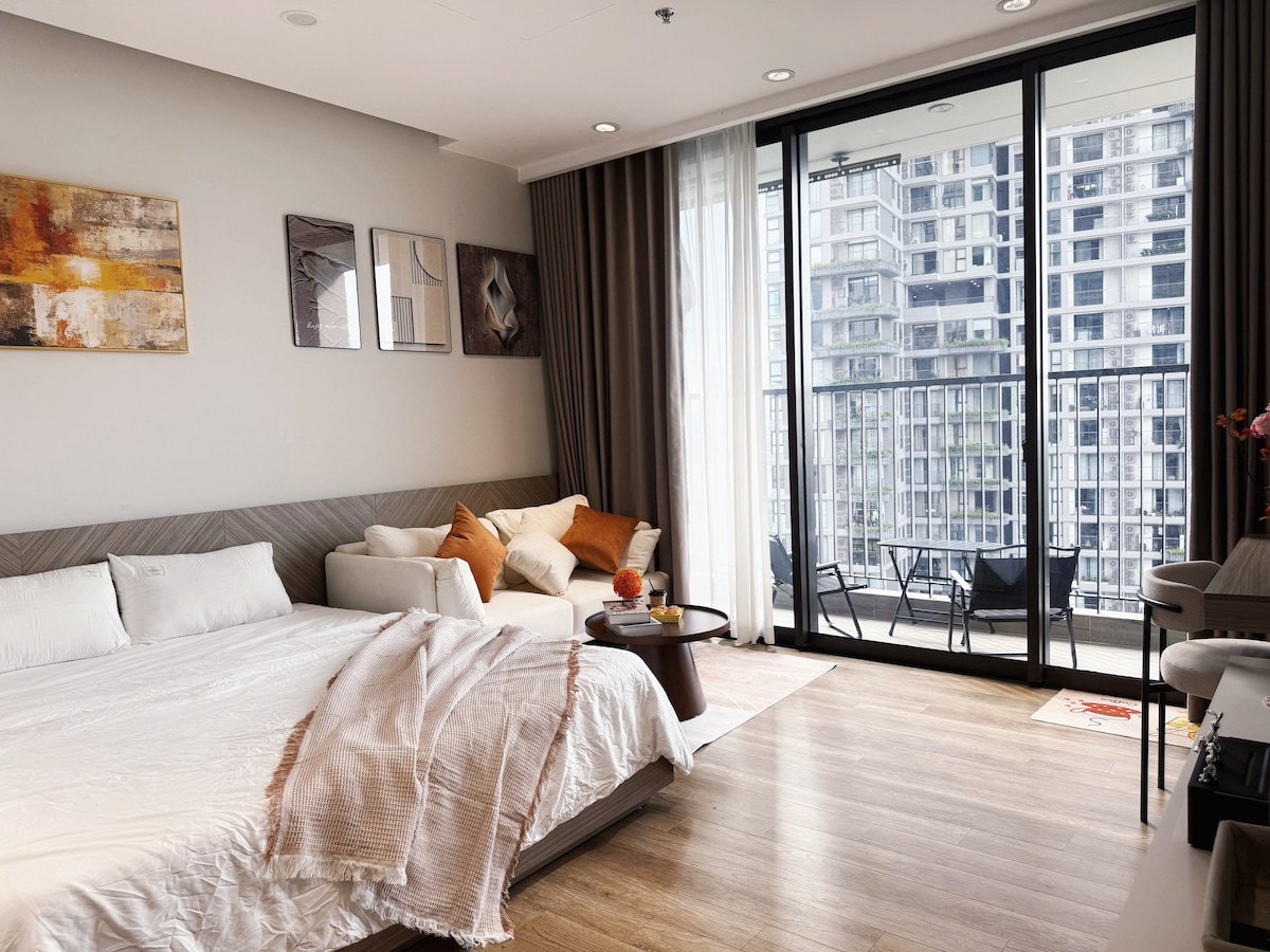 Hello! Your studio apartment is 38m2 high-class like a luxurious and charming 5-star hotel with a comfy bed, private bathroom, kitchenette and a balcony overlooking the West Lake. Especially, you have access to a high-class gym, swimming pool and sauna. Are you traveling, on business trip or simply looking for a private and romantic place? It is a great choice for you, Let’s come and experience! We’re excited to see you here! Best regards, Luxury Econest team