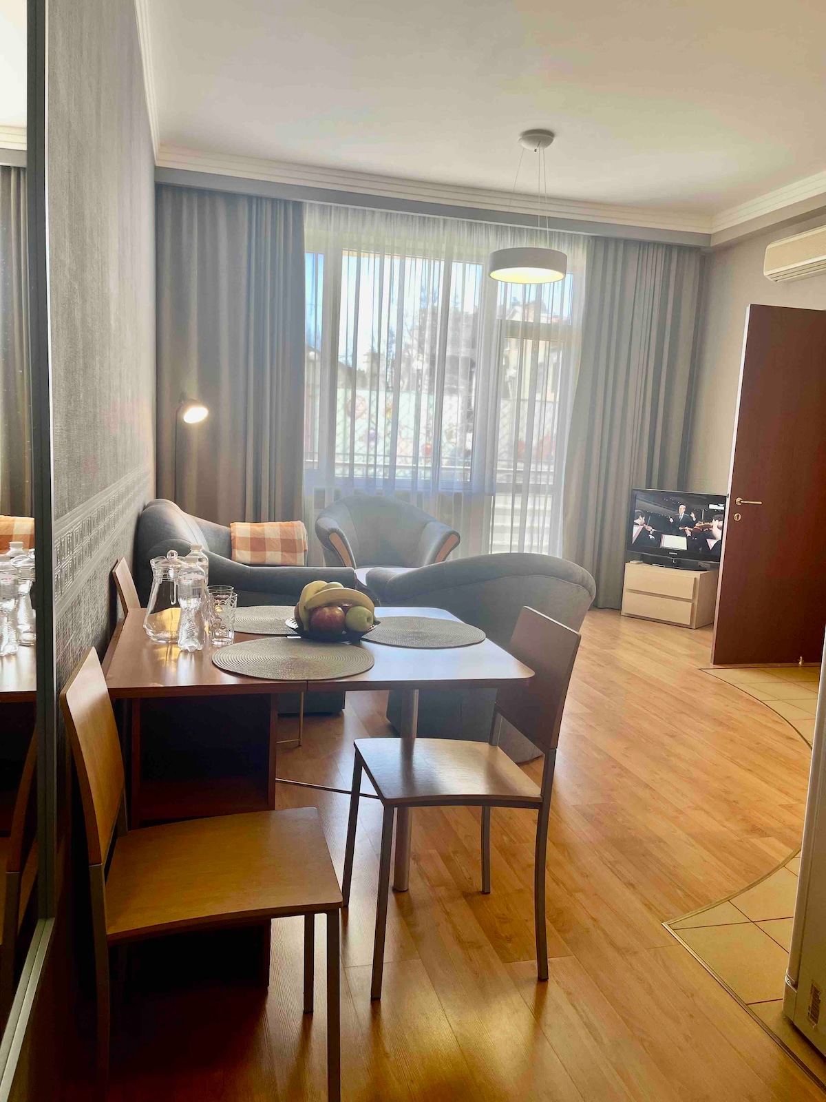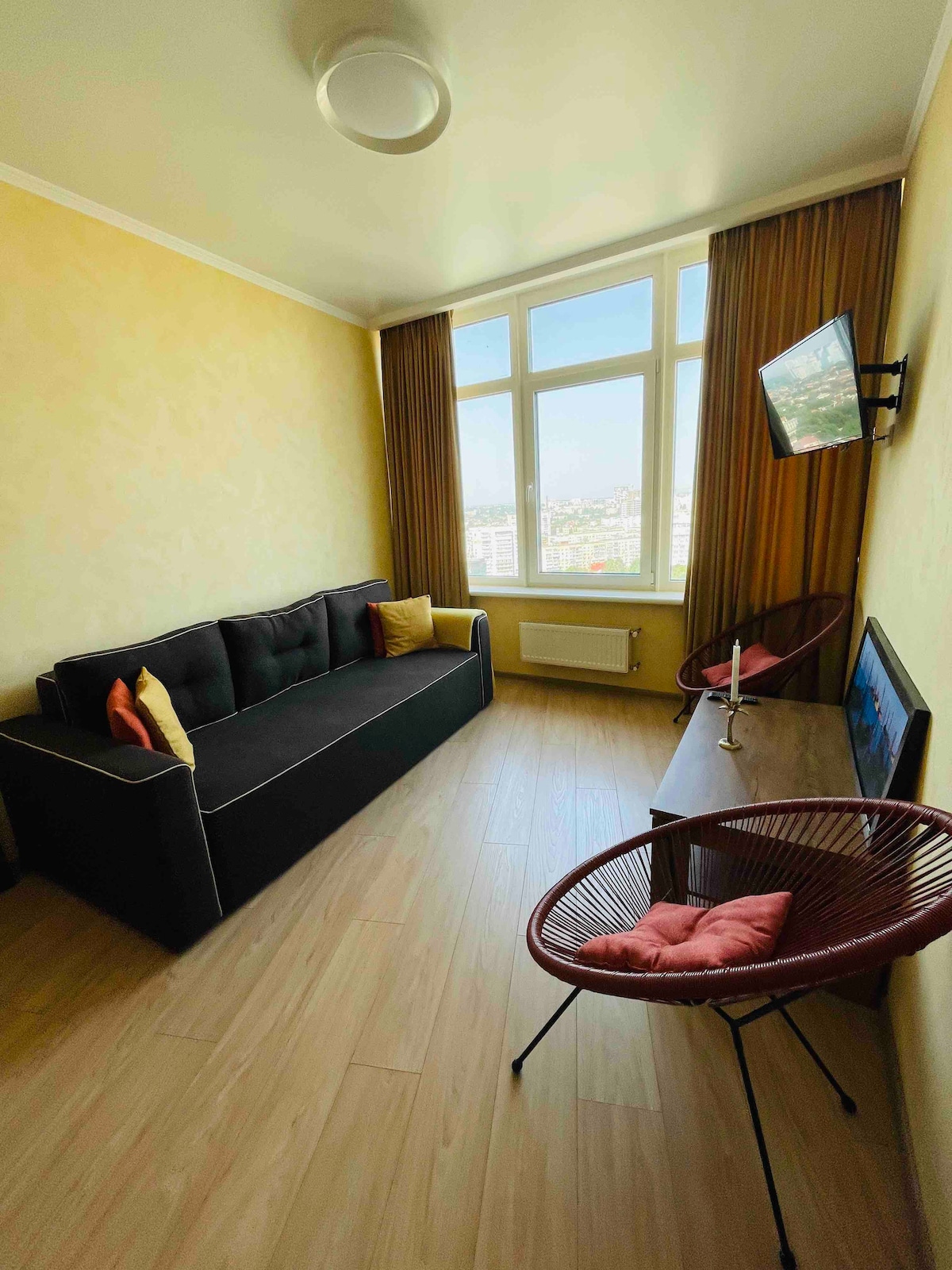 靠近市中心和大海的舒適單臥室公寓。開發良好的基礎設施。 公寓位於新房子中。 現場全天候保安。 大樓內還有遊樂場和藥店。 您可以使用整套公寓和大樓的公共基礎設施。 我大部分的時間都有空。 我隨時為您解答任何疑問。 你可以將車停在窗戶下的免費停車位。 這個區域是許多公共交通工具的十字路口。