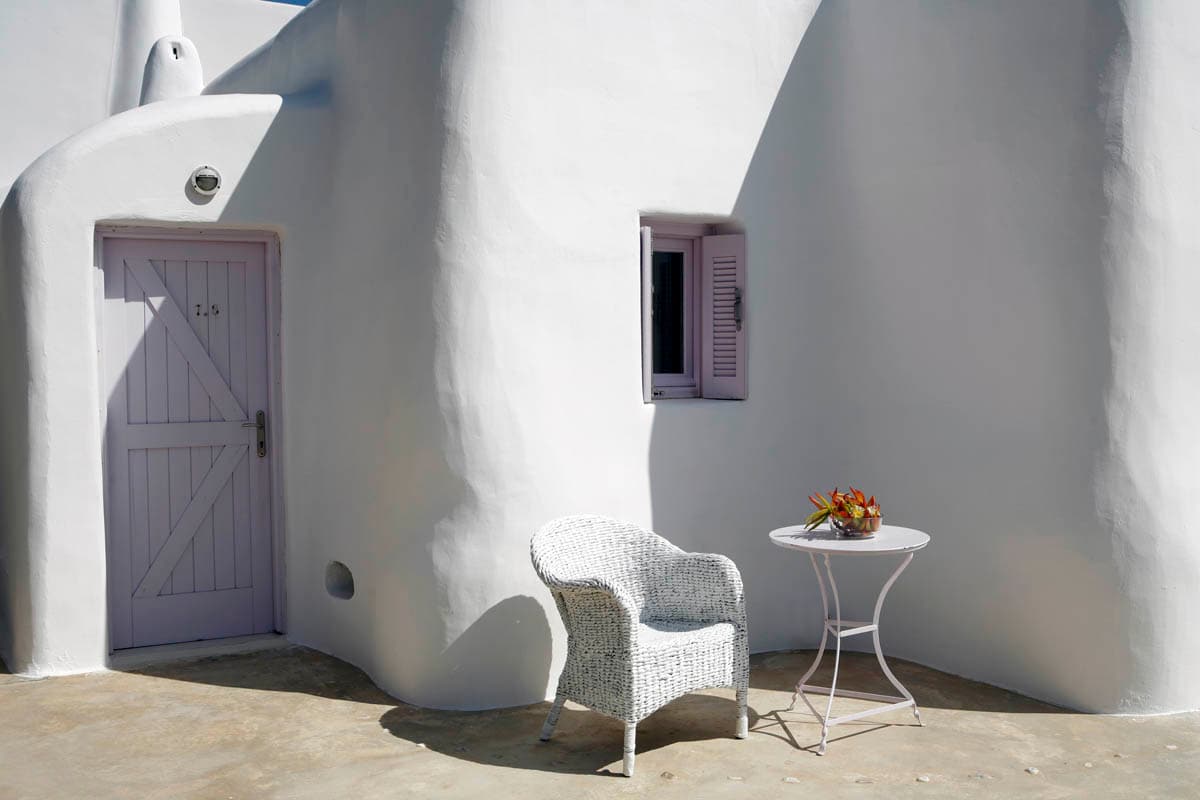 As you step into our Cycladic suite, you are greeted by an atmosphere of unparalleled calm. The design reflects the quintessential essence of the Cyclades, with its whitewashed architecture and minimalist aesthetics that seamlessly blend with the natural beauty of the surroundings. Each detail has been meticulously crafted to create a harmonious sanctuary that resonates with the spirit of Mykonos.