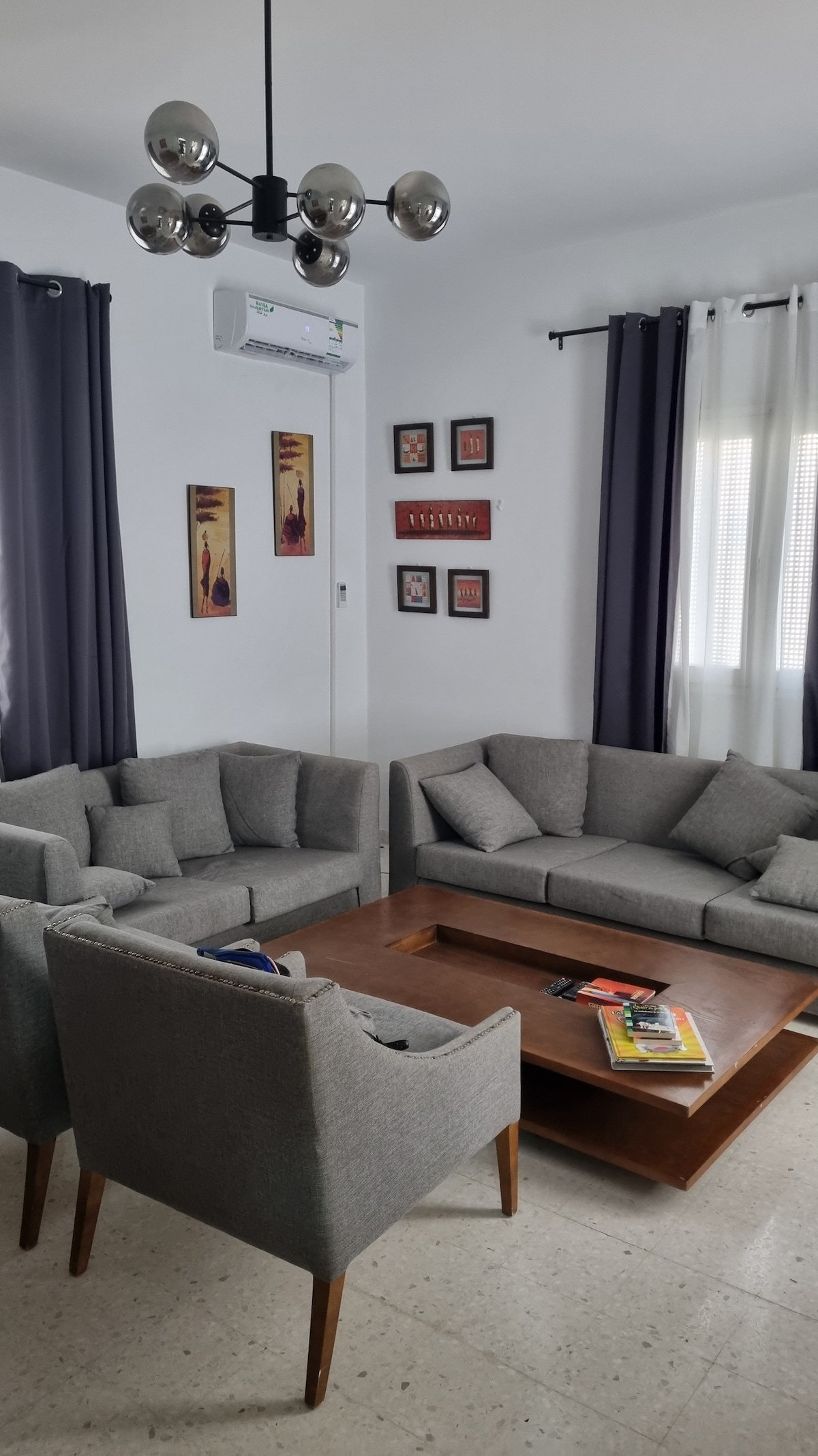 Ce logement paisible offre un séjour détente pour toute la famille. Sa localisation à cité El Wafa Mrezga Hammamet Nord lui met en avant pour sa proximité de la plage sidi Mahersi 5 min à pied et de sa proximité de toutes les commodités (fast food tunisiens, restaurant, Anouar Market, coffee shop, etc). L’appartement est équipé de 2 télés, 2climatiseurs, four, lave linge, sèche-linge, cafetière, batterie de cuisine pour faire des plats etc avec accès piscine partagé et parking voiture gratuit.