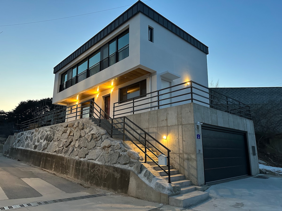 這是一棟小型新建築,位於一個安靜的住宅區,距離江陵站5分鐘路程。我的專業是室內設計,所以我對建築感興趣。我在浪漫的房子裡看到了如此長期的願望。 一棟現代而有趣的雙層建築,結合了白色色調和木材,每棟一樓和二樓都有自己的浴室,並指出設計,確保光線和微風能正常運作,同時遠離外面。 從二樓可以看到陽光和風的眺望,充滿異國情調和特殊,因此很安靜。 一樓露臺小花園盛開的花園就在花卉中。 我想你可以忘記你的日常生活一段時間,放鬆身心。