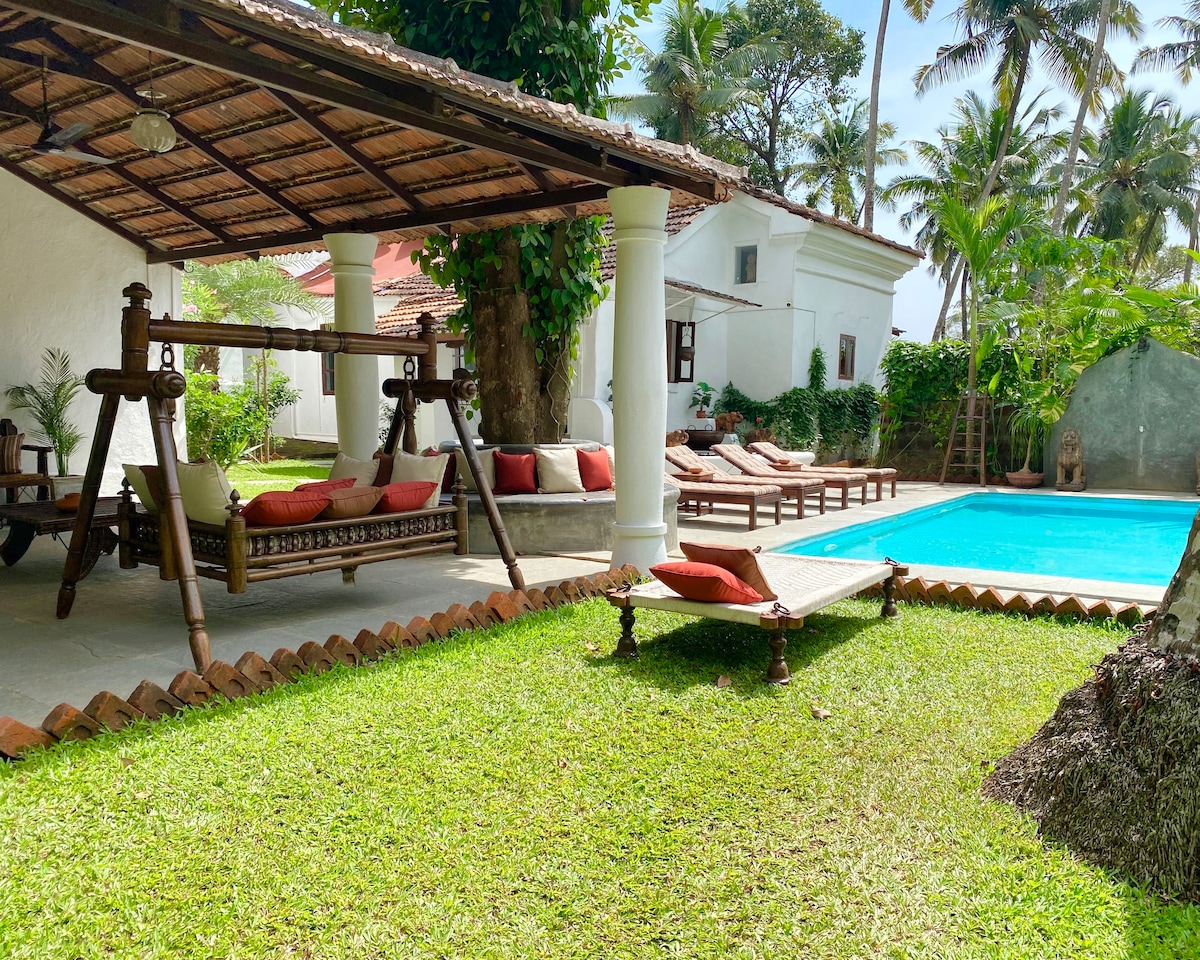 VILLA LOU GOA Heritage House 120 years old Exclusive Use Pool VILLA LOU GOA is an authentic Goan villa built over 120 years ago with a private swimming pool surrounded by a large garden with palms and exotic plants The villa is decorated with antique Indian furniture.