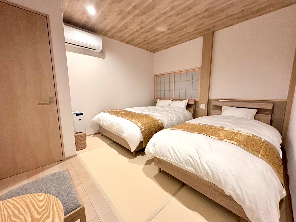 【1-2 人】榻榻米和式客房。車站、便利商店、超市、星巴克都在步行範圍內(獨立房間約 6 張榻榻米)