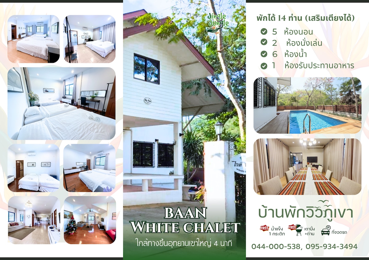 請注意:每個房間入住兩人。 如果一人/房間,將收取額外費用。 A House距離考艾國家公園( Khao Yai National Park ) 3公裏。 大露臺, 360度山景極佳。第3位房客將根據以下詳情收取額外費用。 不可舉辦派對。 大房子、4間臥室、4間浴室、泳池、最多可容納12人- 3人以上,每間房間兩位客人需額外收費。適合想放鬆、平靜的人,「不允許派對或大聲喧嘩。」 Khao Alang的景色非常好。」 3張特大床/3張梳化床