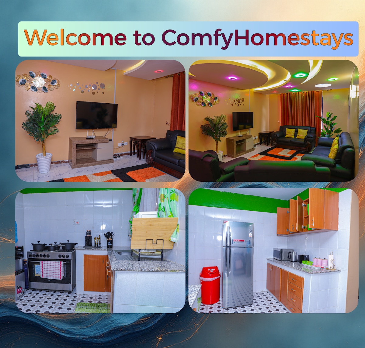 歡迎來到ComfyHomestays! 我們是一家小型家族企業。 我們的目標是確保客戶在入住時感到放鬆和舒適。 我們的3居室公寓位於Milimani的安全社區。 這是一個平靜和放鬆的環境,適合家庭和商務旅客。 我們期待您的光臨。
