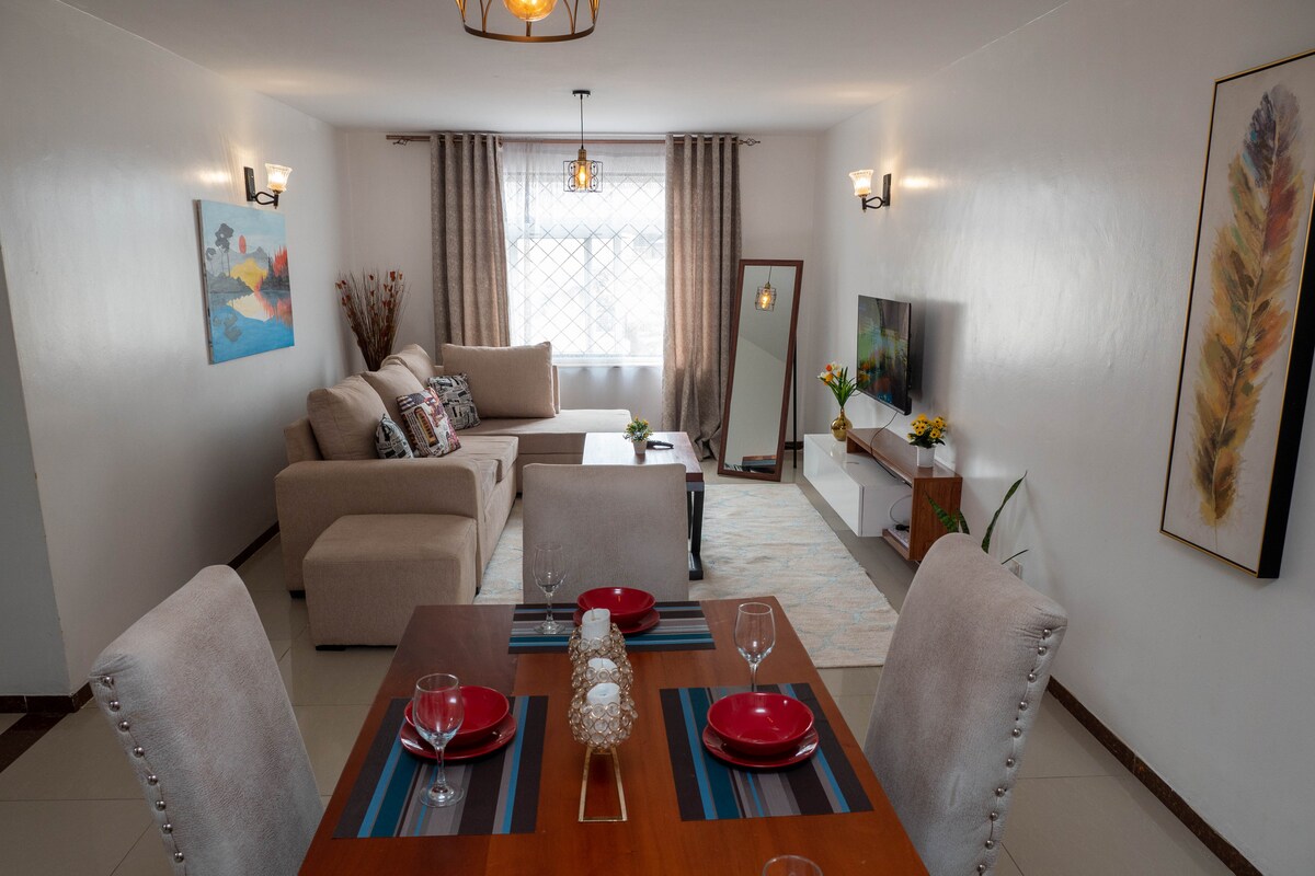 Welcome to our fully furnished 2-bedroom apartment at the heart of Nakuru City designed for comfort and convinience. It features a fully equipped kitchen, smart TV, high-speed Wi-Fi ,hot shower, heated swimming pool, gym, Backup Generator, free secure parking, and a quiet compound. Perfect for families or friends for both short and long stays. It’s close to local attractions in Nakuru , shopping, and dining, offering a calm retreat ideal for work, leisure, or a memorable weekend getaway.
