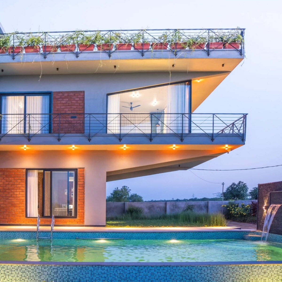 Welcome to Sunlit Meadows by KKS Farm House, a modern luxury farmhouse designed for peaceful escapes, private celebrations, and memorable stays. Sunlit Meadows offers a premium farm stay blending nature and comfort. This beautifully designed villa features spacious lawns, a private pool, stylish interiors, and serene countryside views perfect for families, friends, or weekend getaways. Whether relaxing poolside, hosting celebrations, or escaping the city.