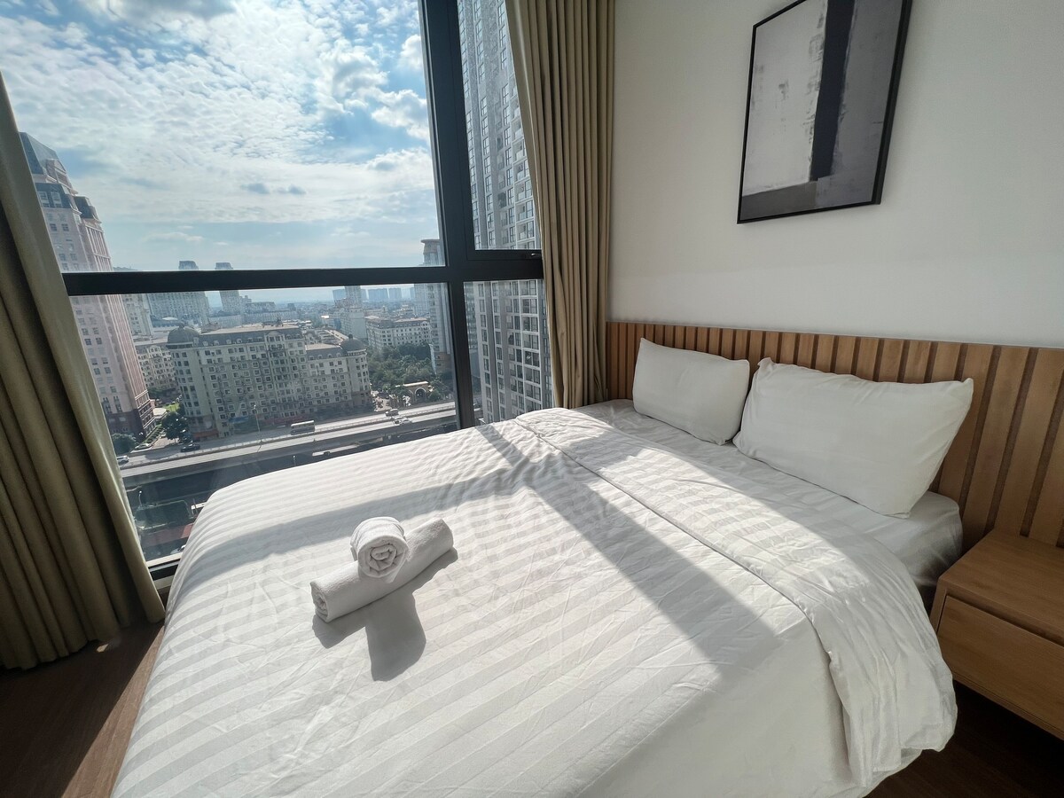 Apartment at Vinhomes Skylake with a super chill city view. You can walk to Landmark72 and InterContinental, just 1.2 km to The Manor, and near the bustling Korean Town area. The building has a shopping mall downstairs with restaurants, cafés, K-Mart, and Winmart. ★ Clean and airy room ★ Convenient 24/7 self check-in with smart lock Strong and stable Wi-Fi Free Netflix, private washing machine, fully equipped kitchen, and city guidebook provided ★ Tour booking support at discounted prices
