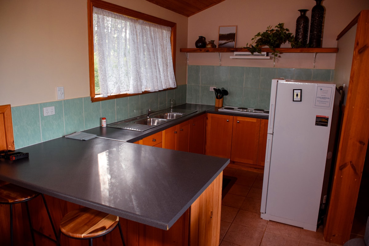 Cascade Cottage是我們的情侶度假勝地,建造自房源的石頭和斜土。 我們的單間公寓由石頭和泥土建造,配有舒適的1.8米寬雙人牀、美麗的新鮮牀單和超溫暖的Donnas。 這間小屋設有完全自備的開放式廚房和寬敞的浴室,以及美麗的爪腳浴缸。