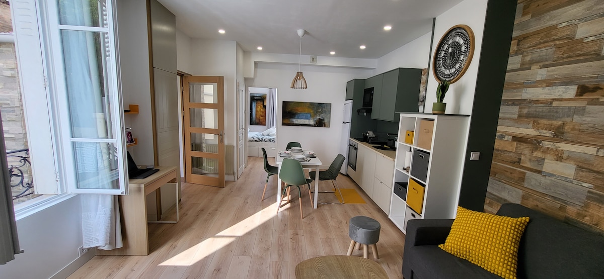 歡迎來到這間迷人的 40 平方公尺翻新公寓,位於市中心一個安靜的住宅區,有一間臥室、一間帶睡床的客廳、一間設備齊全的廚房、一間現代化的浴室和所有必要的舒適設施,讓您住得愉快。非常適合情侶、家庭或商務旅客入住,最多可容納 5 人。 您將會喜歡:私人花園、免費安全停車位、靠近巴黎、戴高樂機場、迪士尼樂園和阿斯泰利克斯公園