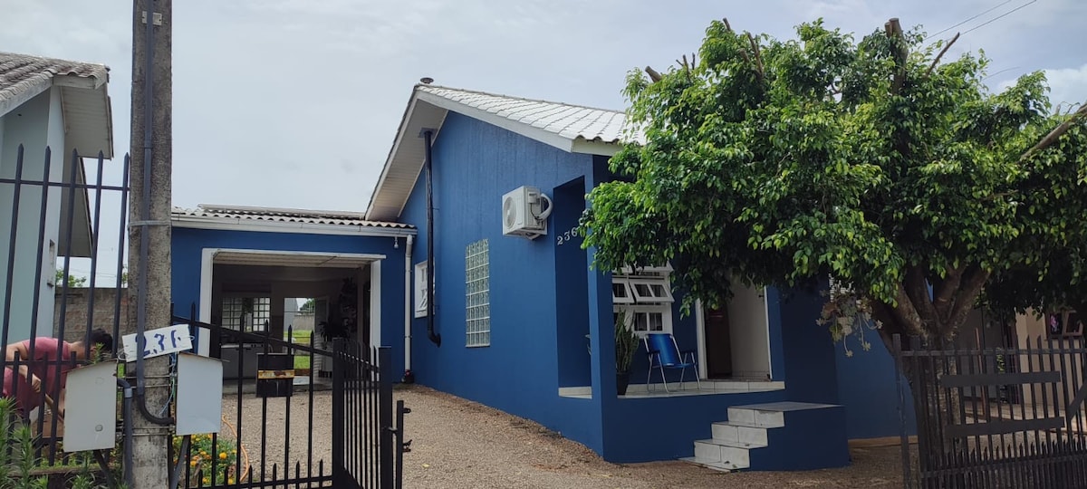 Esqueça de suas preocupações neste lugar espaçoso e tranquilo. Casa confortável à duas quadras da avenida. Aqui você encontra conforto e laser para relaxar e descansar depois dos dias de feira. Fica a apenas 6 min de carro do parque da Expodireto. Possui uma suíte com cama King e banheira de hidromassagem, 1 quarto com cama Queen e um quarto com cama casal, mais um colchão de casal que pode se colocar no escritório e torna-se mais um quarto. Churrasqueira e cozinha equipada,piscina aquecida.