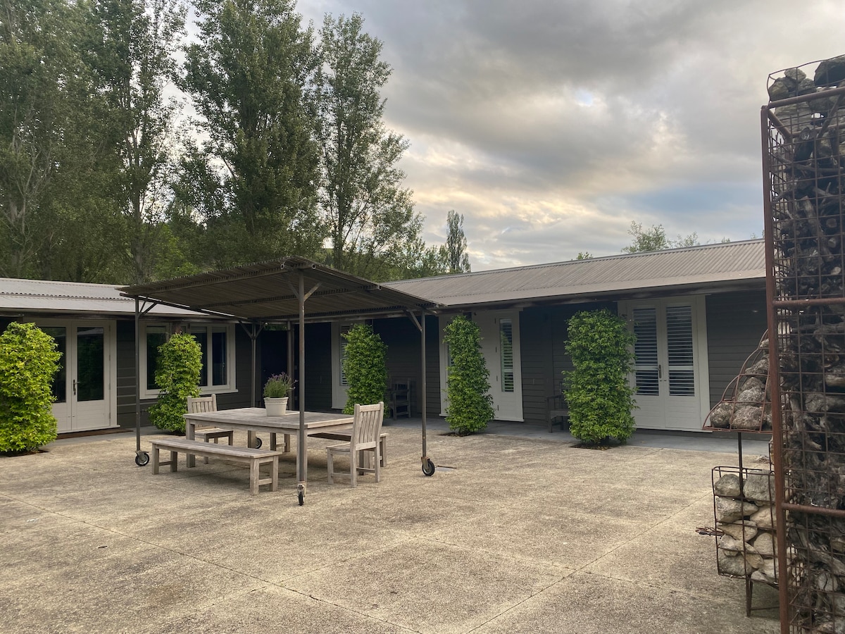 2 private double rooms with king bed and queen bed, with 100% white cotton bedding. Antique furniture, stunning view across the vines down the valley and courtyard. Private garden adjacent. Use of pool at owners discretion. No children. Ideal for 2 couples travelling, local weddings etc. Walking distance to the Black Barn River Room venue