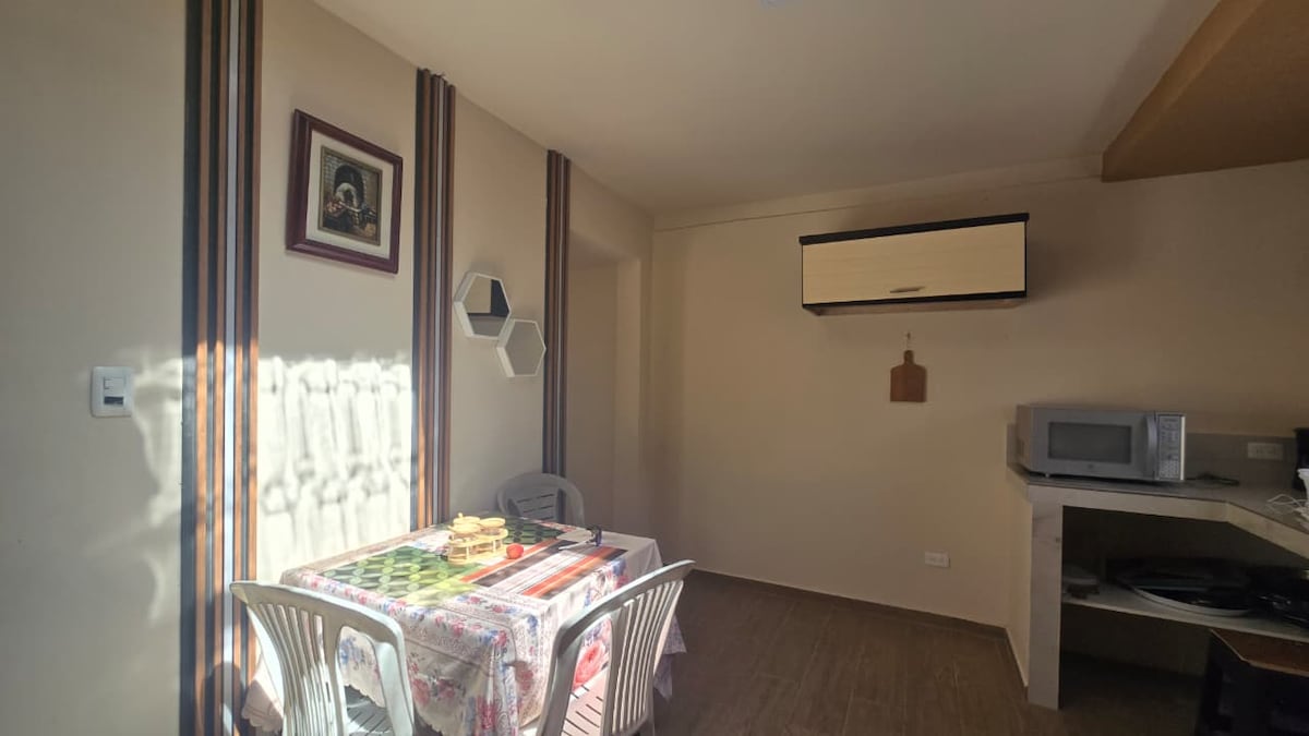 Mini Suite , perfecta para una escapada romántica, plan familiar o de amigos en contacto con la naturaleza. Cuenta con 1 dormitorio, cocina, comedor y baño independiente, areas verdes y zona bbq.