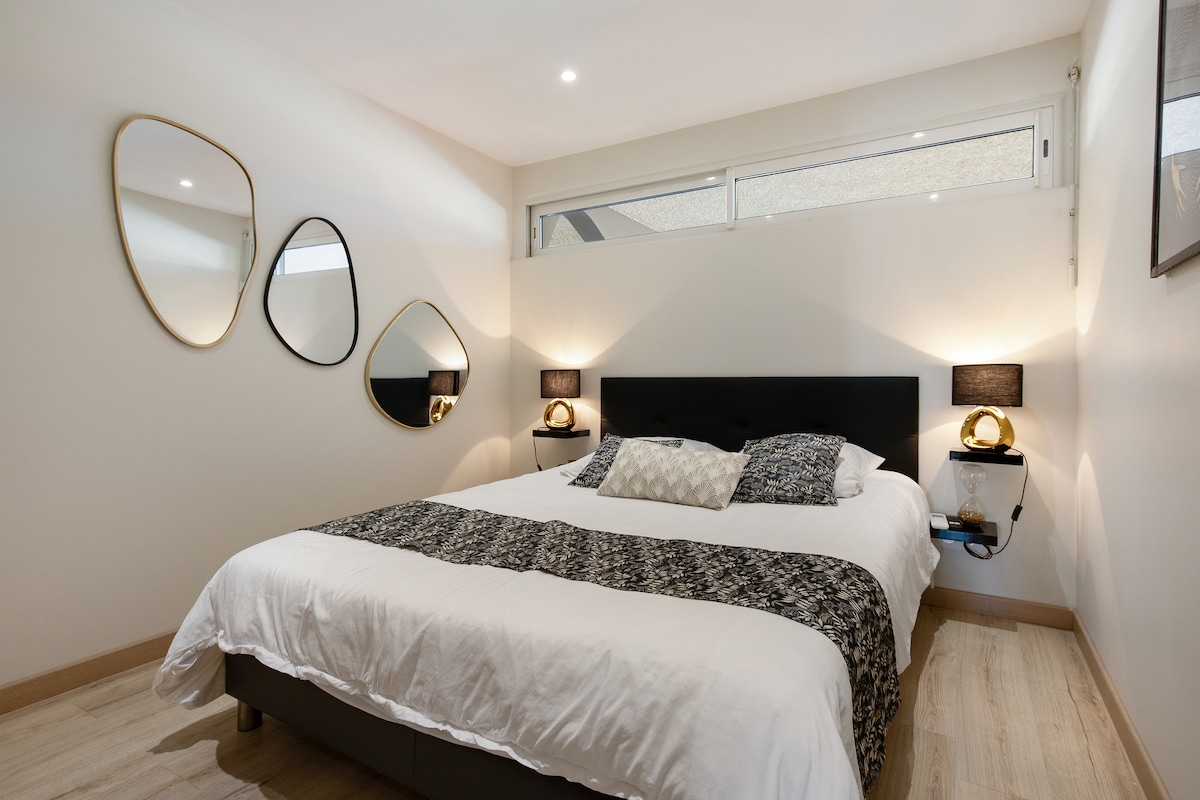 溫馨乾淨的空調單間公寓,配備所有舒適設施,非常安靜,面積 21 平方公尺,有獨立入口,不會與其他房客共用。迎賓咖啡、濃縮咖啡、茶、礦泉水、瑪德蓮蛋糕、牛奶、牛油、可頌麵包、果醬、微波爐、自行車出借 靠近著名的LES GRANDS BUFFETS餐廳、動物園、市中心和海灘。 距離您的車輛 10 公尺的停車位(摩托車車庫) 附近有前往市中心的巴士。 單間公寓內有一台 32 吋電視供您使用。