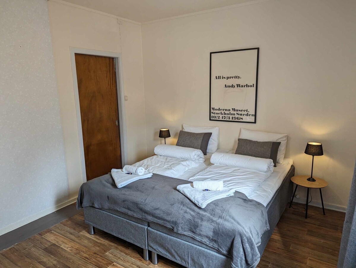 這是我在納爾維克的私人住宅,位於市中心,可輕鬆前往所有地方。 距離火車站800公尺。 距離雜貨店200公尺。 距離購物中心和巴士站500公尺。 距離滑雪區 1.6 公里。 由於這是我的私人住宅,我的個人物品將放在房子內,例如臥室和浴室內的衣櫃中的衣服。請善待並尊重這一點。