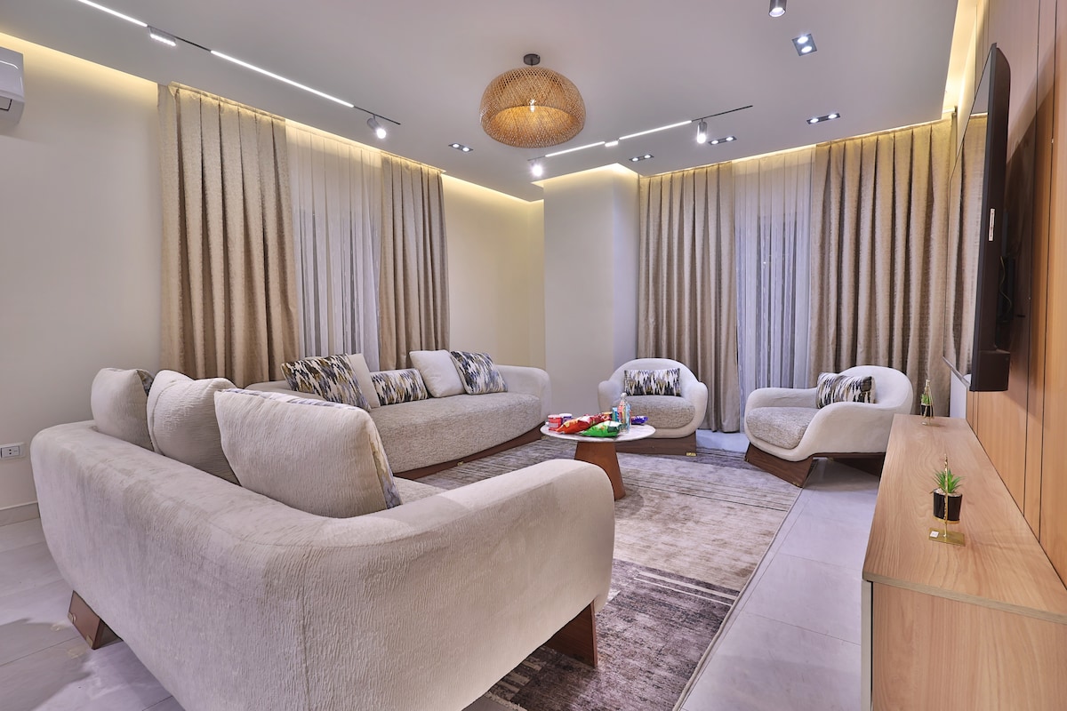 Enjoy a luxury stay in this elegant and spacious 3BR apartment with 3 bathrooms, ideally located near City Stars Mall. Fully equipped, spotless, family-friendly, perfect for groups, with WiFi, elevator, easy check-in, and quick access to restaurants, cafes, shopping, and Cairo attractions.