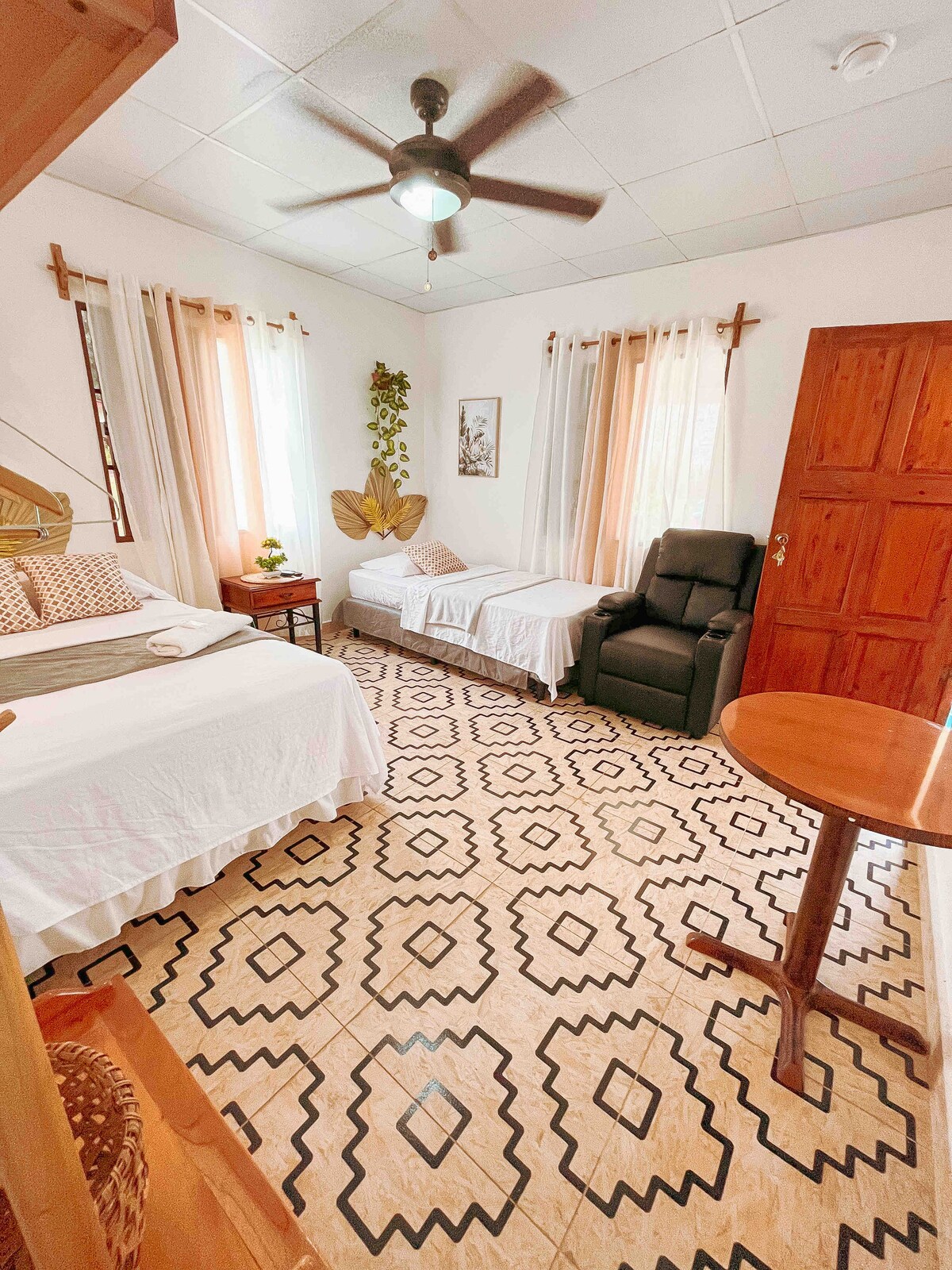 這間迷人的三房大農場坐落在熱帶樹木、茂密花園和科克萊河(Río Coclé)舒緩的聲音之中。 在河畔牧場做瑜伽開始新的一天,在清澈的河流中暢游,或在森林樹冠下享受寧靜的散步。 這是你的無線天堂:沒有互聯網、沒有電視、幾乎沒有手機訊號,只有大自然、靜止和偶爾的鹿觀賞。 點燃燒烤爐,享用直接從旅居採摘的新鮮水果。