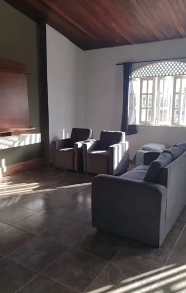 É um primeiro andar de uma casa familiar. O ambiente não oferece cozinha. Ele é um ambiente independente da casa. Só possui dentro da suíte: camas, um banheiro e uma geladeira conforme tem nas fotos. Não é permitido acesso a casa principal e não oferecemos nenhum tipo de serviço (cozinha). Possui: Wi-Fi, garagem coberta para um carro, banheiro privativo, geladeira e ventilador. Para acomodação de 5 hóspedes, teremos disponíveis 1 cama de casal, 1 cama de solteiro e colchões (podendo ser rede)
