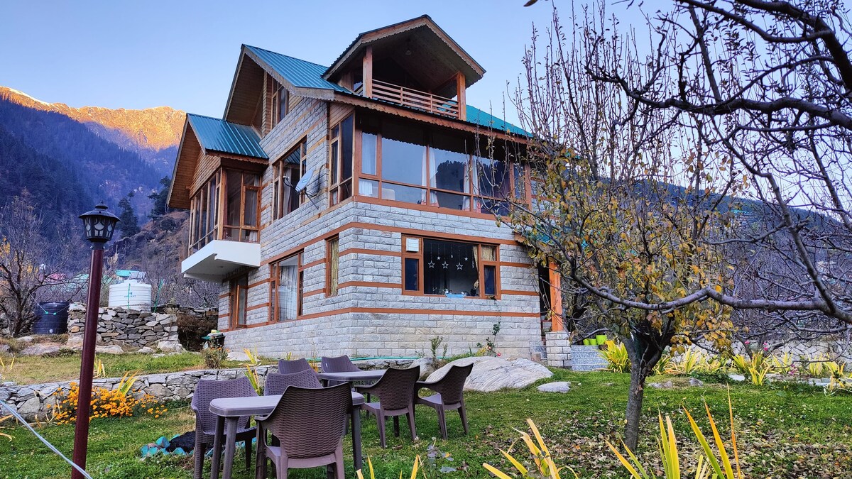 這個民宿位於馬納利最壯觀的景色。步行即可抵達哈迪姆巴寺廟和大自然漫步。 距離商場路3公里。 步行2公里即可抵達舊馬納利橋。 我們的房源是2間小屋,這些樓層有2-3間房間,每間房間都有私人陽臺和美麗的戶外座位。 這個在一樓。 我們有內部廚師,您可以訂購任何東西,或從我們的內部菜單中選擇。