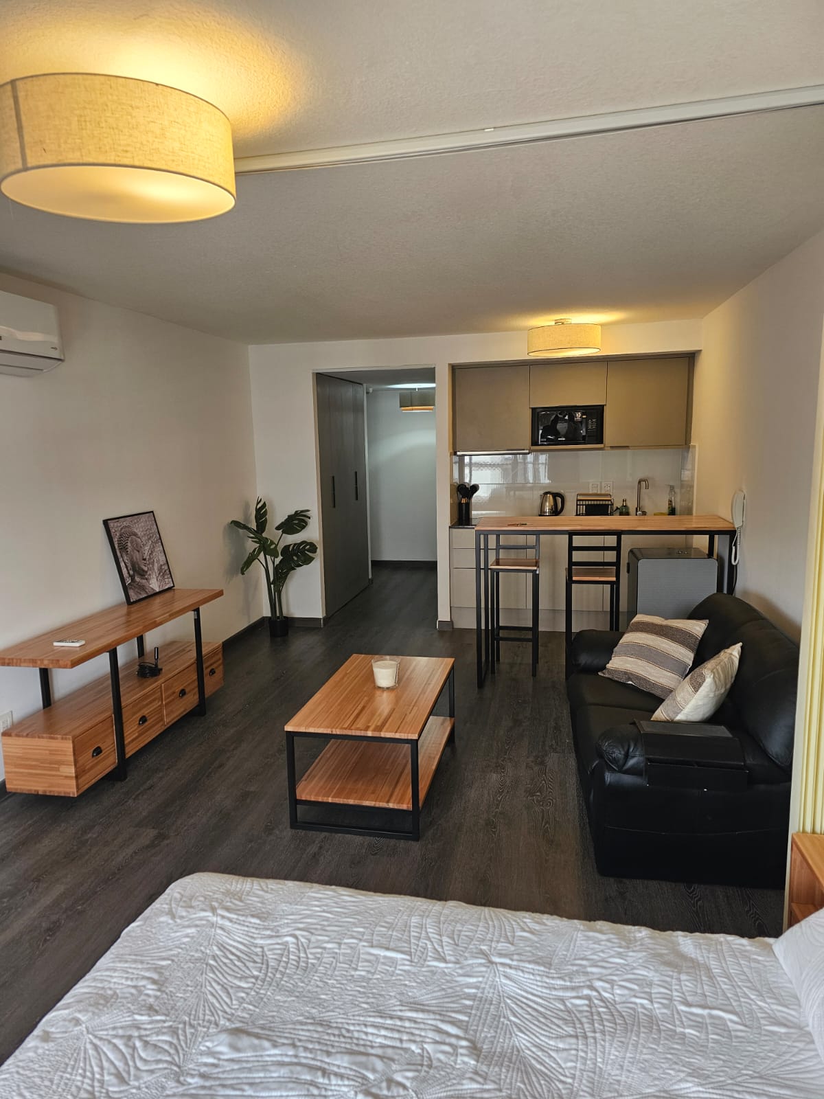 寬敞的單間公寓,配有陽臺、廚房、車庫、空調
