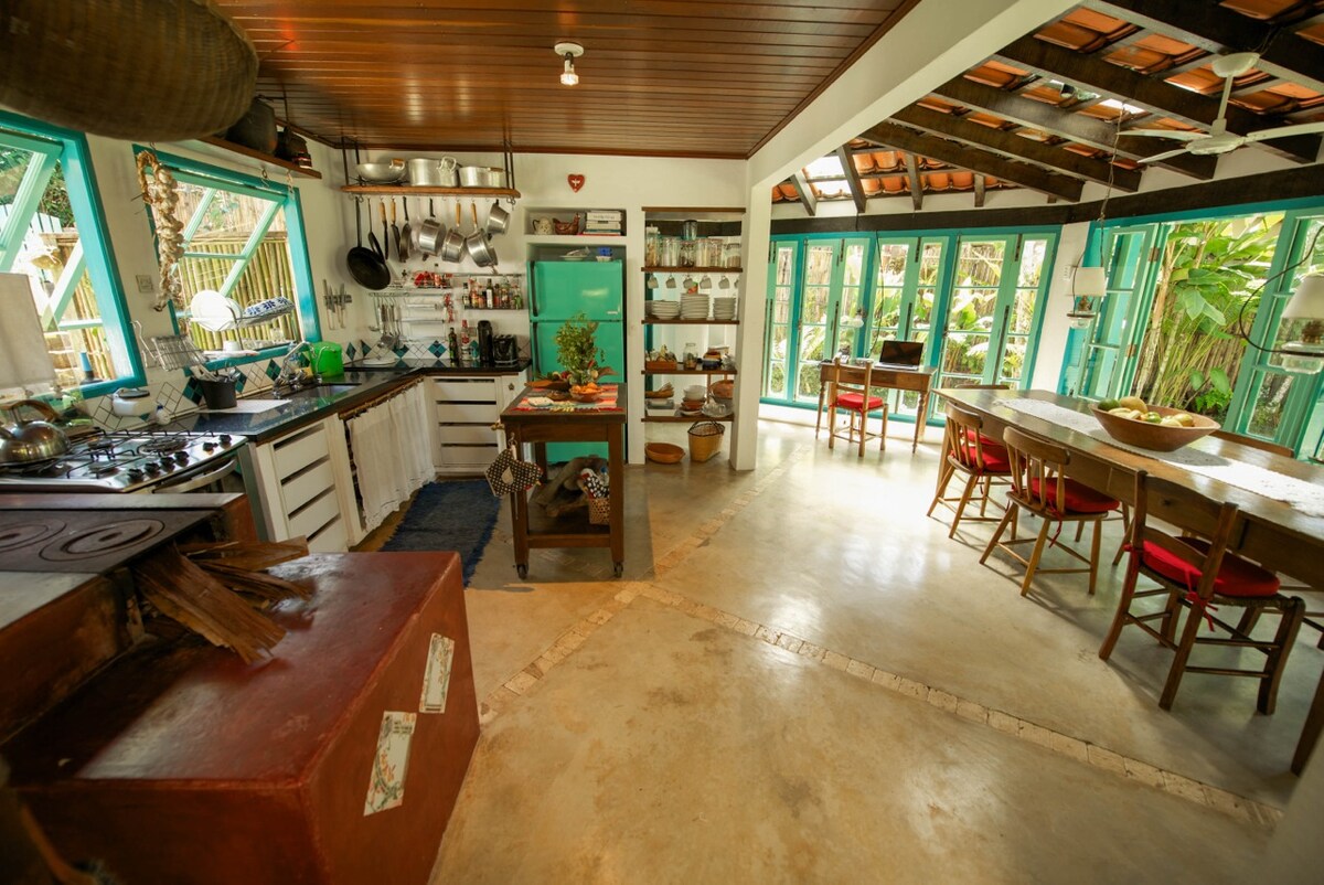 Projeto de Carlos Lemos, nossa casa é térrea, espaçosa, e super iluminada. Situada num terreno com vista privilegiada para o mar e as montanhas. Está cercada pela mata atlântica, com poucos vizinhos, à cerca de 500mts da praia. A casa é bastante equipada com uma cozinha e lavanderia completas, e tem internet rápida (100Mb) com wi-fi em todos os ambientes. A sala de estar tem lareira e a varanda área externa é bastante ampla com deck, redes e churrasqueira portátil.