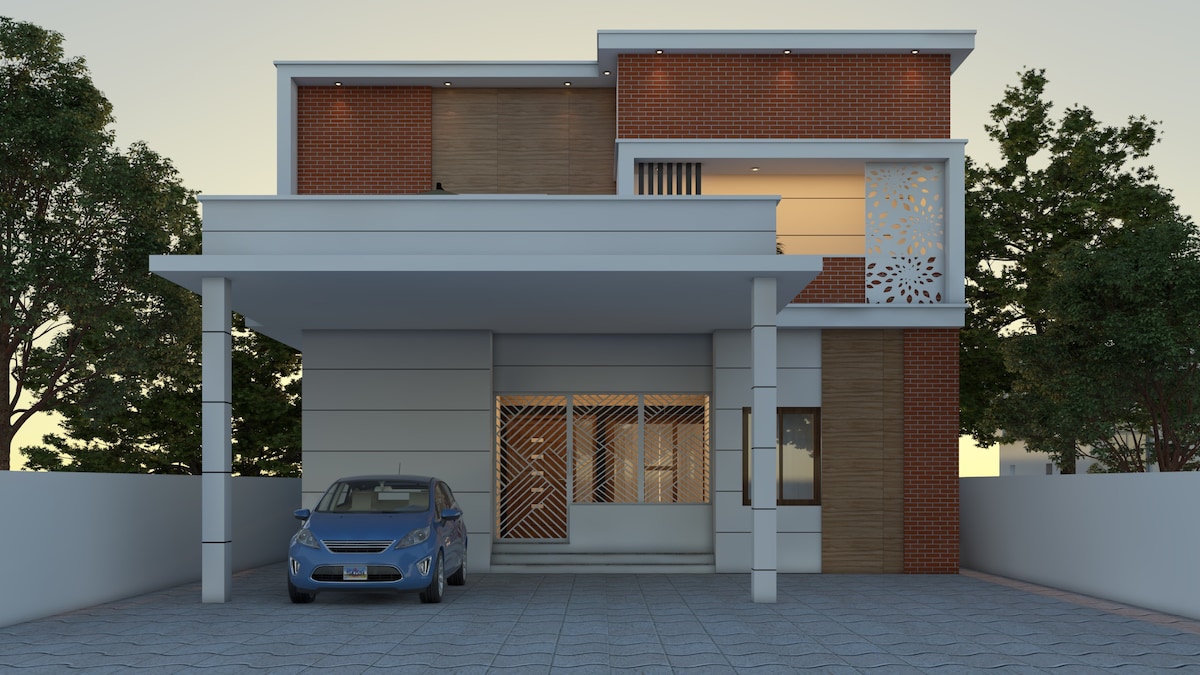 房源位於著名的地方,非常靠近New Bustand Karaikudi。 2間配有空調的加大雙人牀。客廳裡有1張日光浴牀 有獨立的餐廳,與親友一起享受。 有廚房。3間帶西式馬桶的浴室。 有一個獨立的房間可存放您的行李。 如果您有家庭功能或結婚功能,您可以為房客預訂我們的房源,享受住宿。 房源外面有所有商店、餐廳、雜貨店和商店。