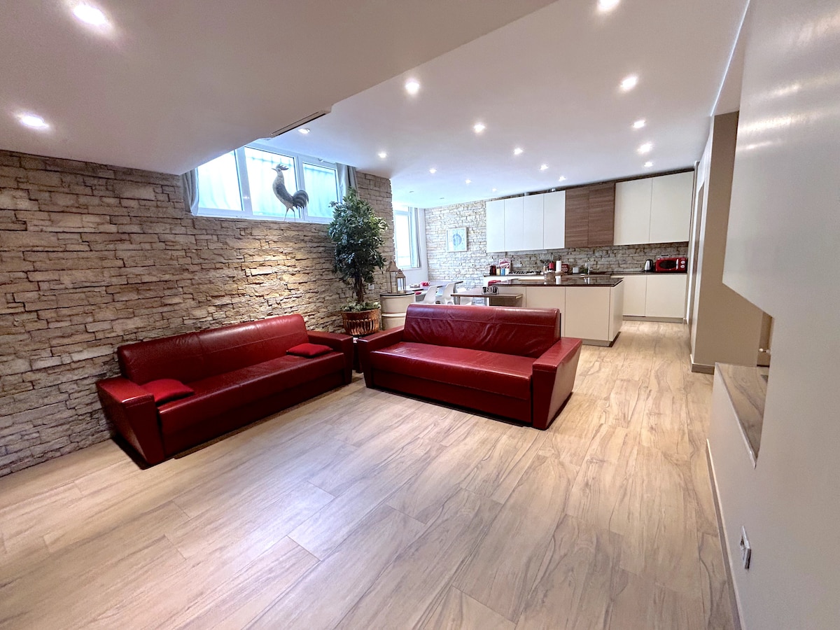 一間大型( 180平方米, 1900平方英尺)的時尚公寓,位於一棟歷史悠久的建築內。 坐落在70年代義大利設計的客廳傑作,坐落在都市中心。