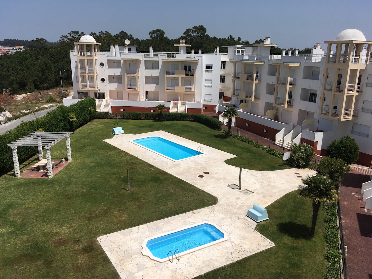 It is at the top of one of the highest areas of Nazaré that you can find the Green Hill apartment. With 3 spacious bedrooms with built-in wardrobes and a living area with access to a balcony for the greatest comfort of your family and friends. You can also relax in the condominium pools or have a barbecue on the available grills. With a walk of about 15 to 20 minutes, you are in the center of Vila da Nazaré and also near Nazaré beach.